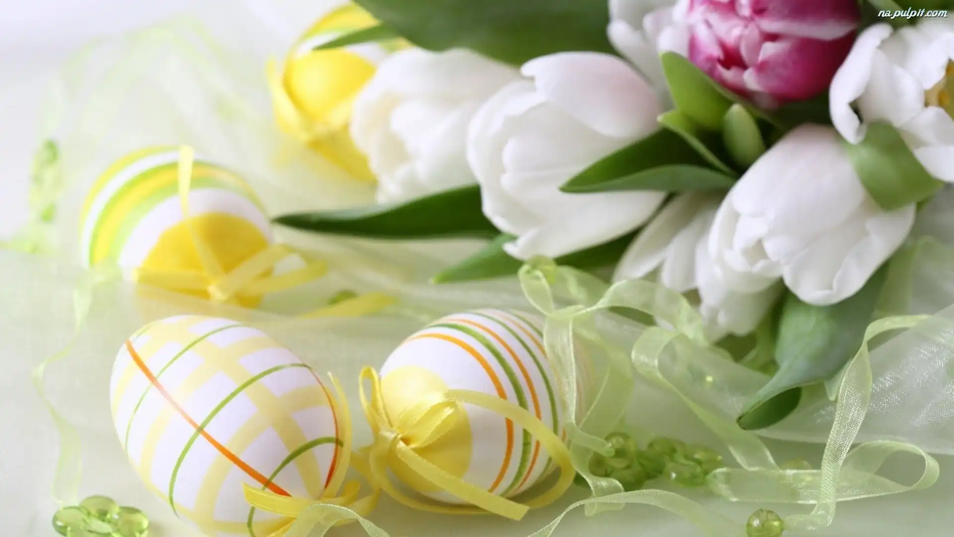 Tulipany, Jajka, Wstążki, Pisanki Na Pulpit