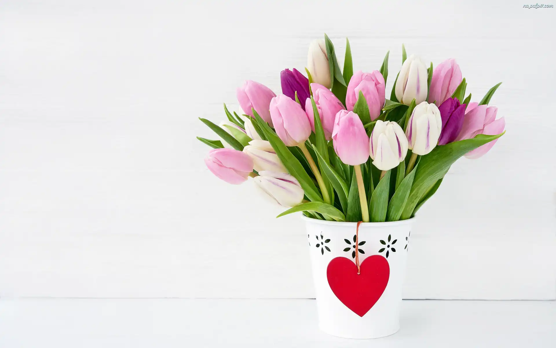 Zawieszka, Tulipany, Serce, Biała, Bukiet, Kolorowe, Doniczka Na Pulpit