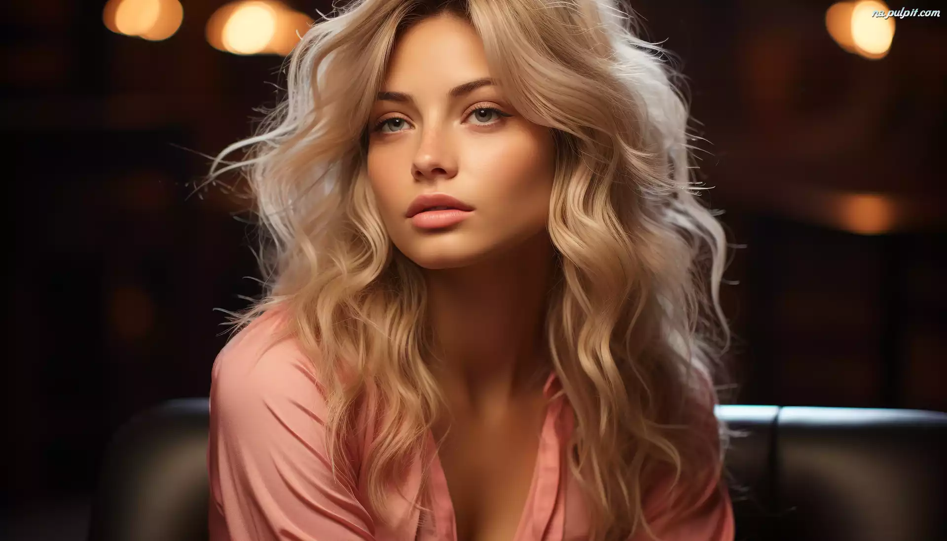 Różowa, Długowłosa, Blondynka, Twarz, Kobieta, Bluzka Na Pulpit