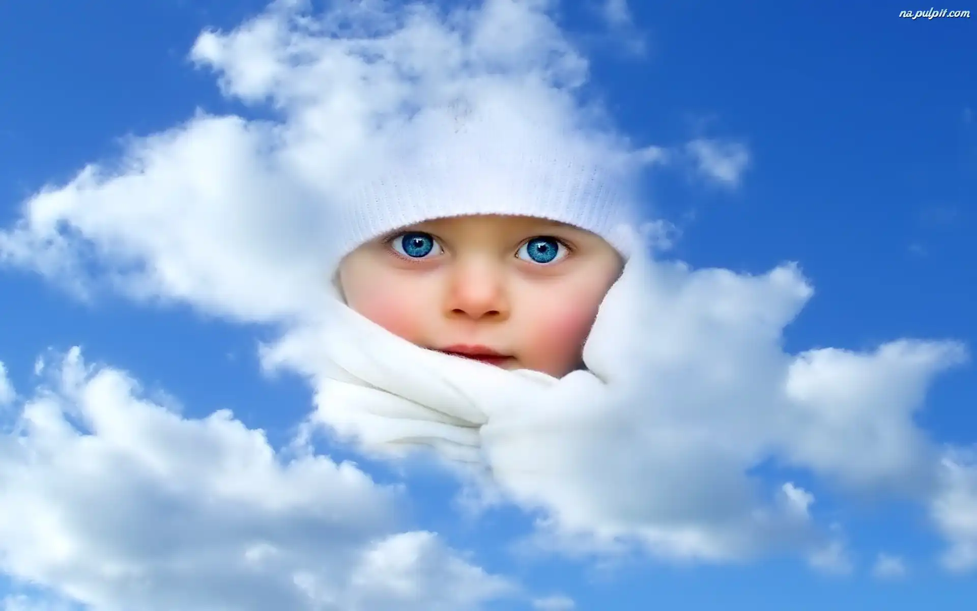 Twarz, Niebo, Chmury, Niebieskie, Dziecko, Oczy Na Pulpit