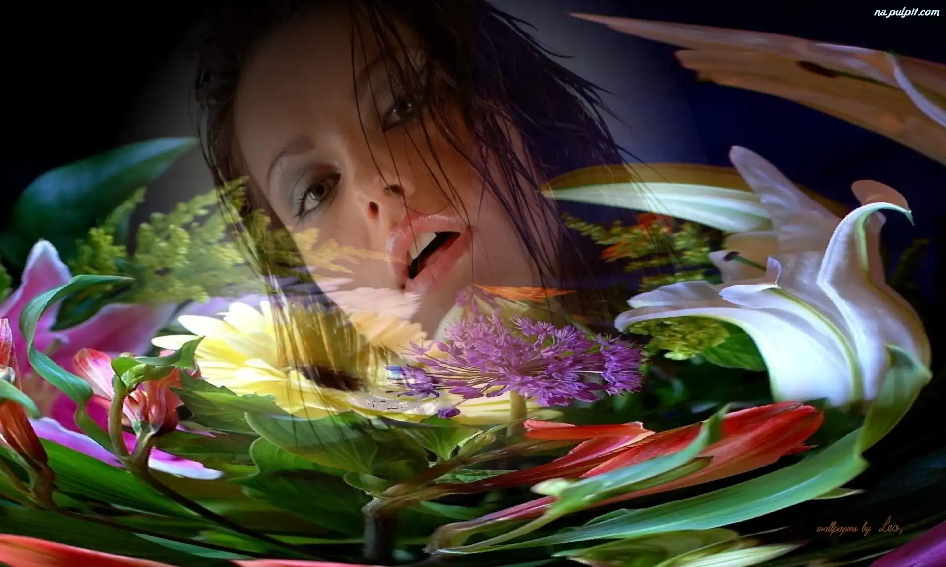 Kobieta, Twarz, Kwiaty Na Pulpit
