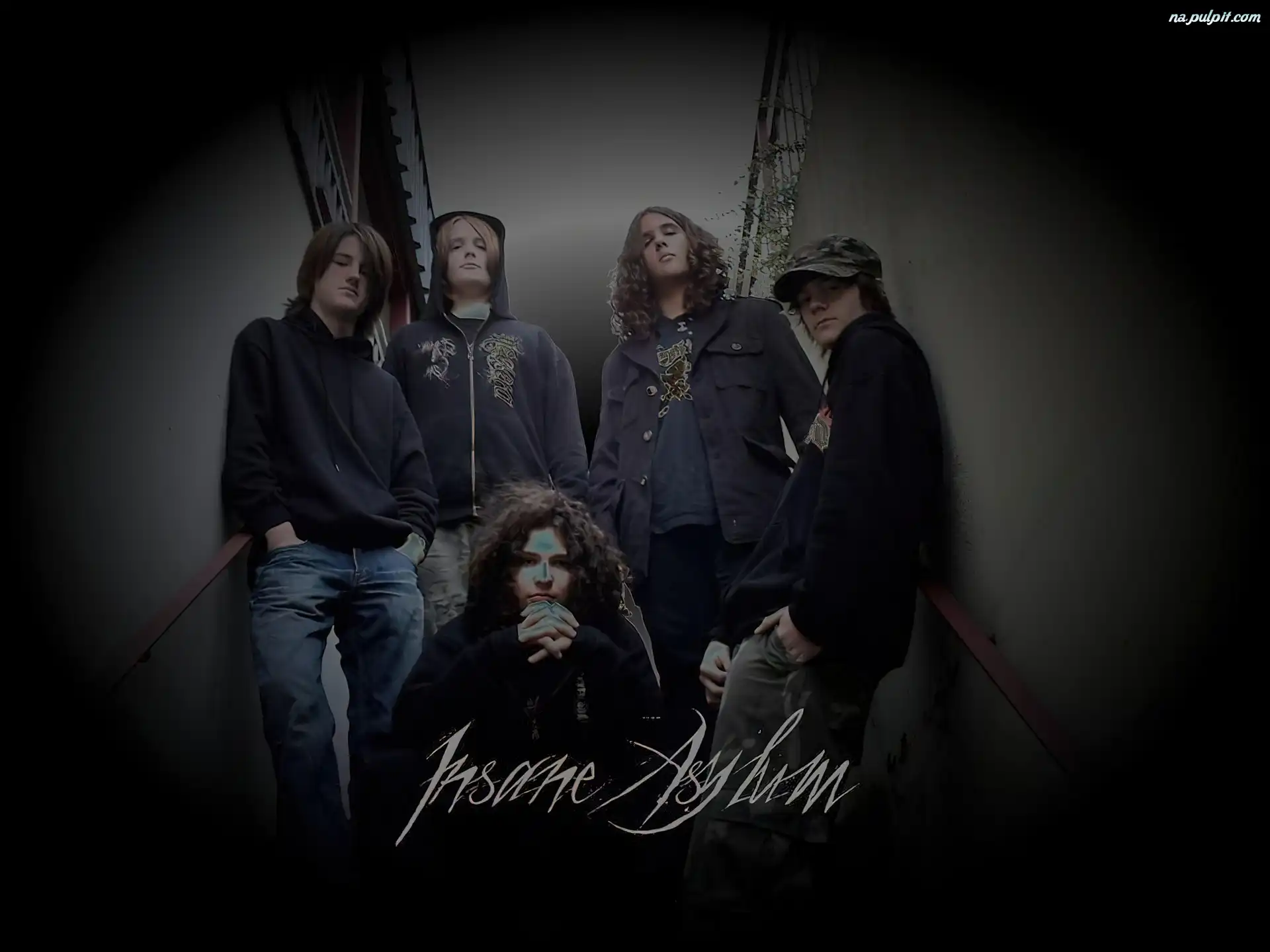 Insane Asylum, cały zespół Insane Asylum, żyletka uzi, Insane Asylum, pistolety książka, Insane Asylum, krzyż Insane Asylum, zespół twarze, zespół, Insane Asylum, ludzie czepeczka, spodnie moro, Insane Asylum, zespół cały