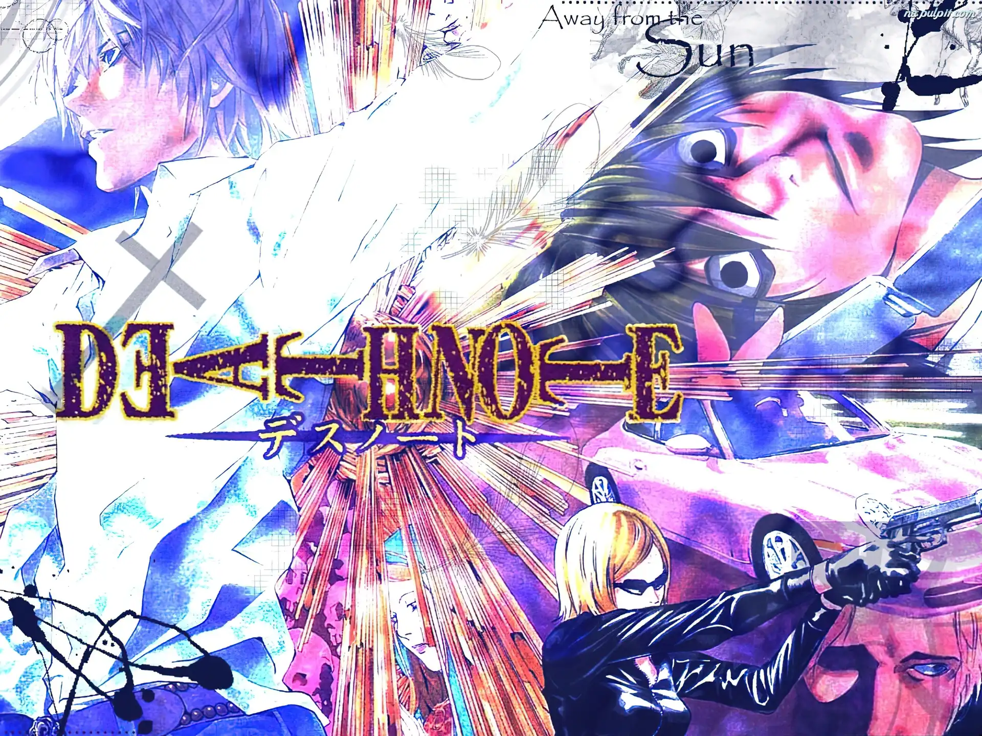 porshe, twarze, pistolet, napisy, Death Note, ludzie Na Pulpit