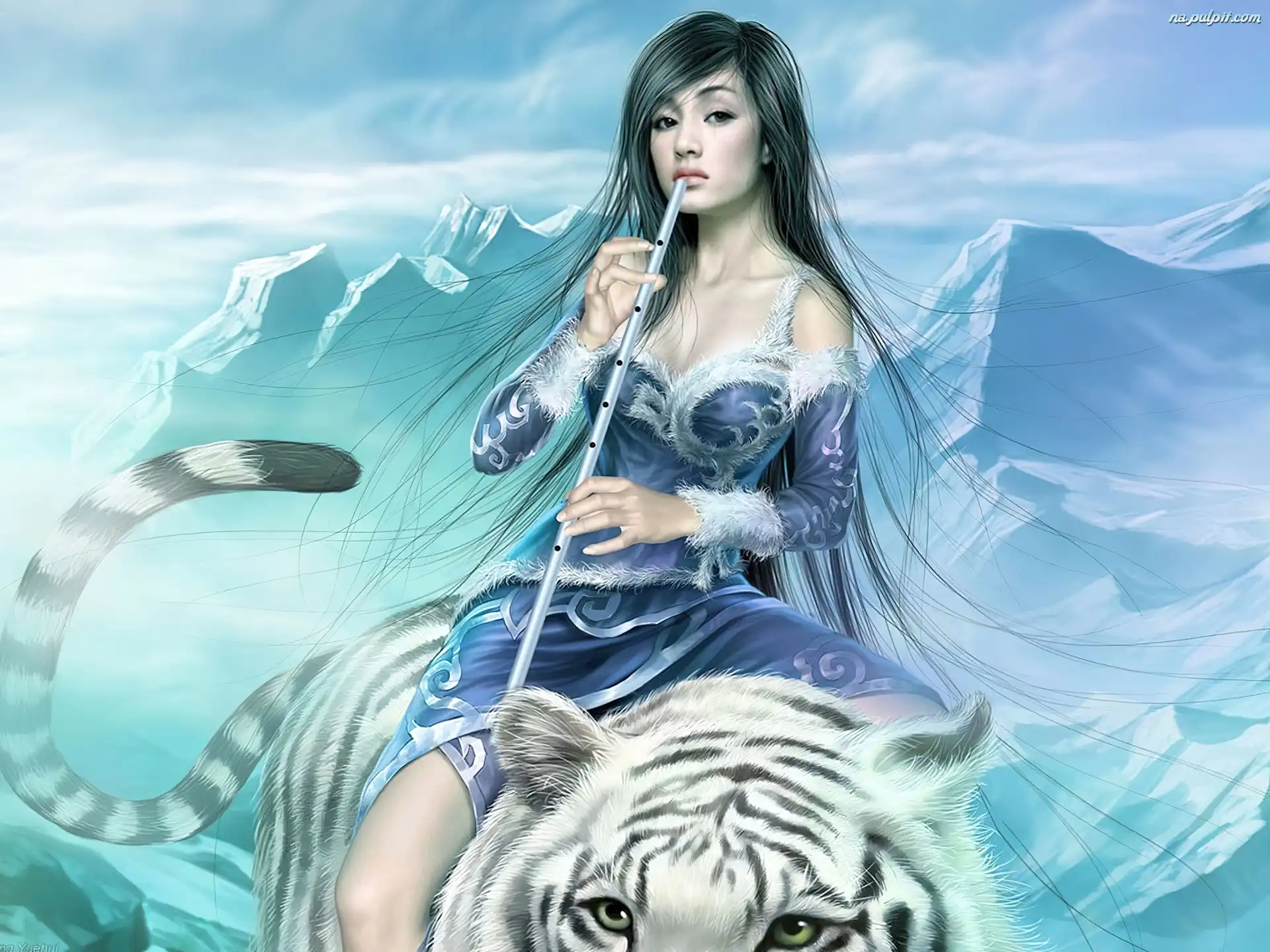 Tygrys, Góry, Flet, Kobieta, Biały Na Pulpit