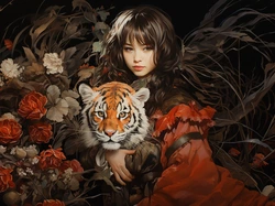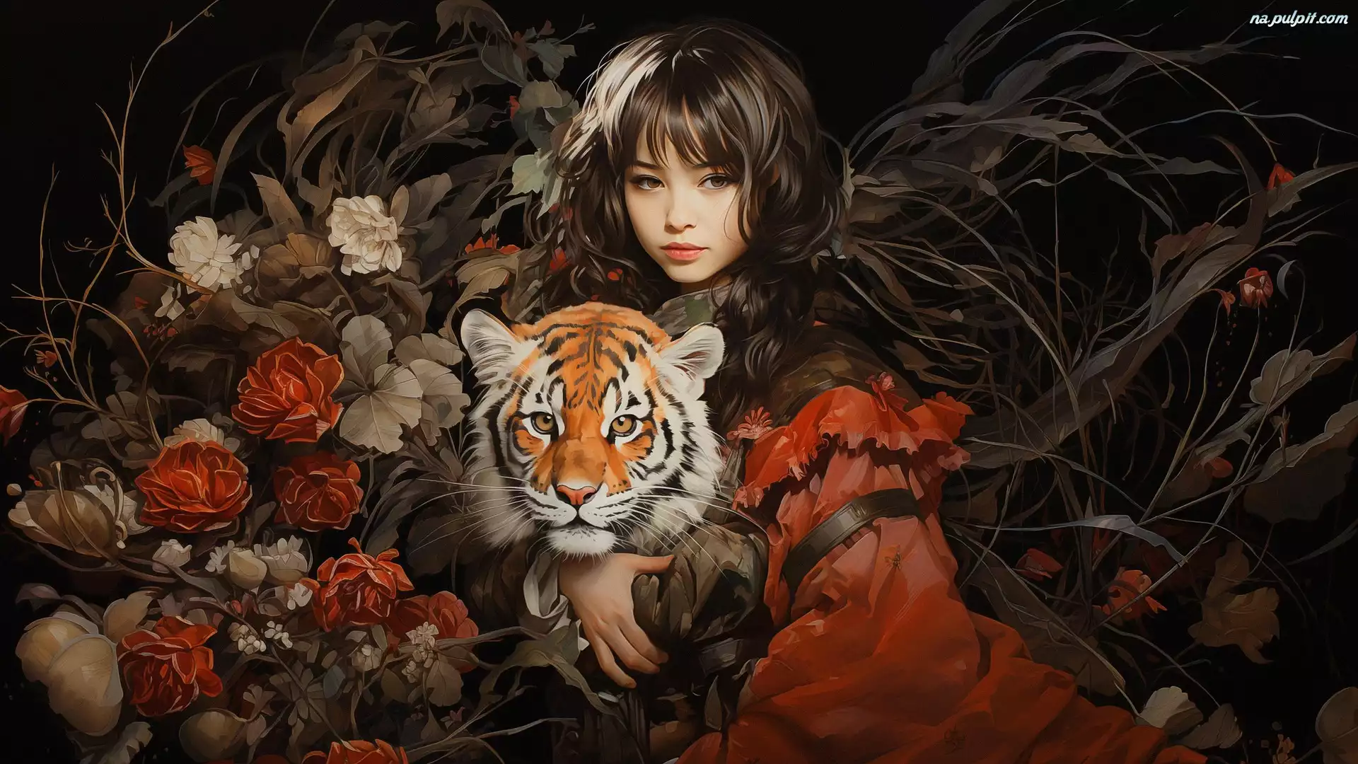 Tygrys, Dziewczyna, Kwiaty Na Pulpit