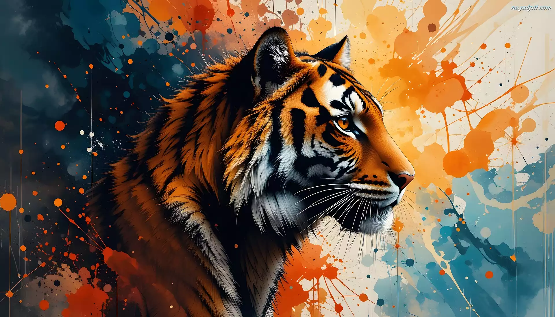 Tło, Tygrys, Profil, Grafika, Kolorowe