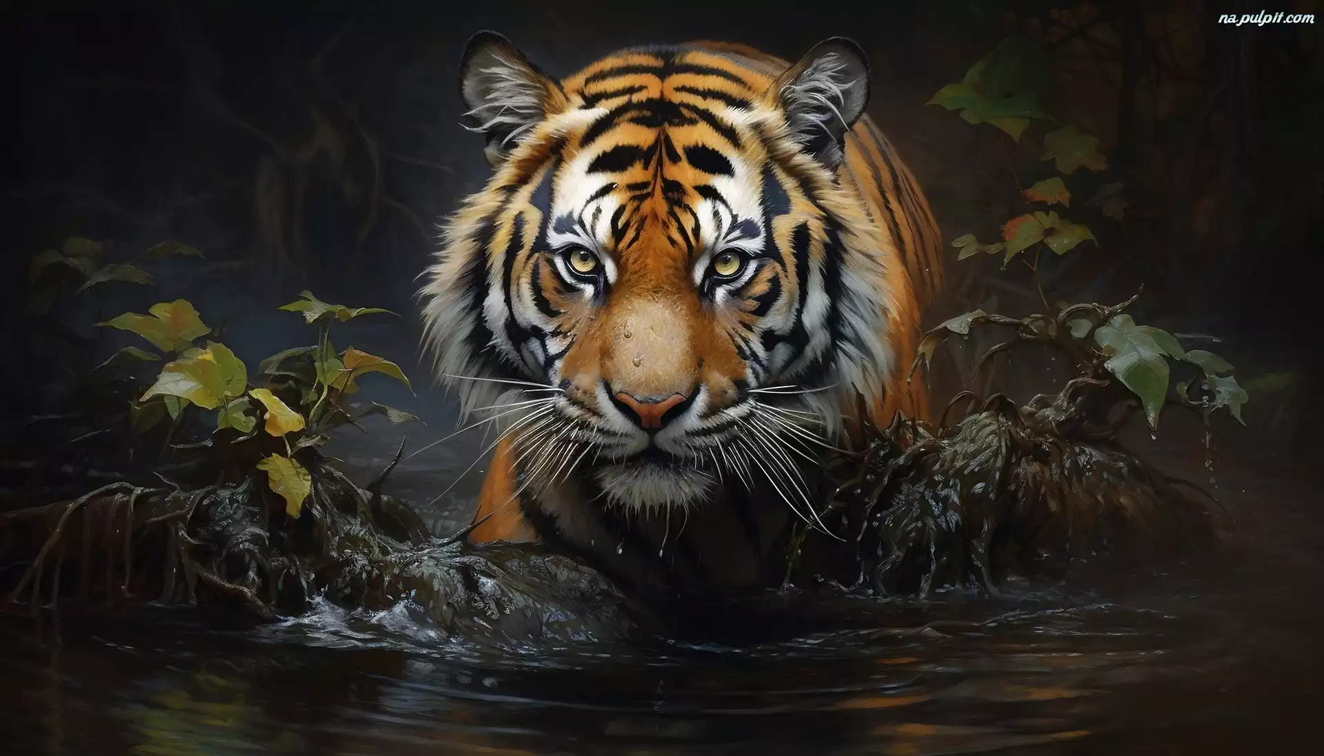 Woda, Tygrys, Rośliny, Grafika, Kamienie Na Pulpit