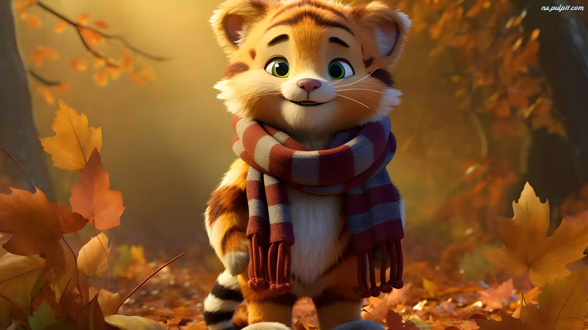 Uśmiech, Drzewa, Szalik, Jesień, Grafika, Liście, Las, Tygrys Na Pulpit