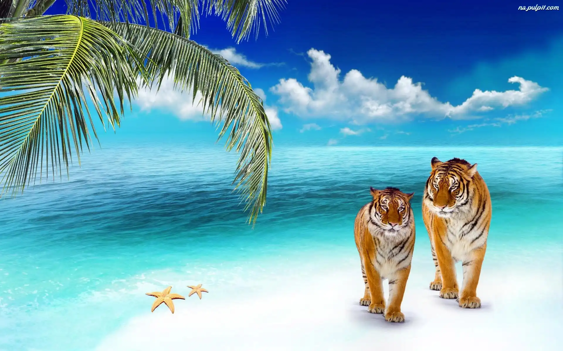 Tygrysy, Plaża, Ocean, Palma Na Pulpit