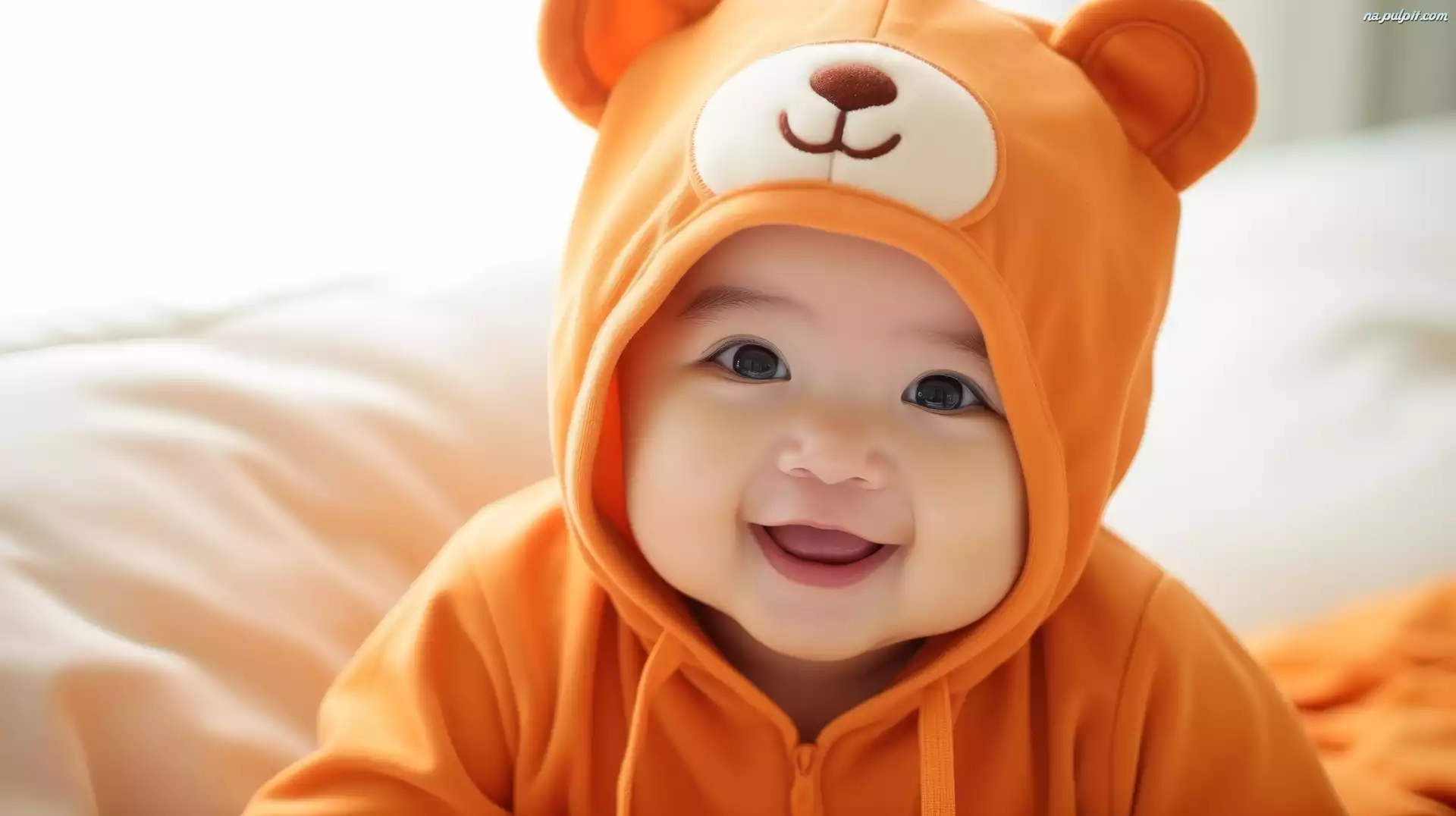 Dziecko, Uśmiech, Pomarańczowe, Ubranie Na Pulpit