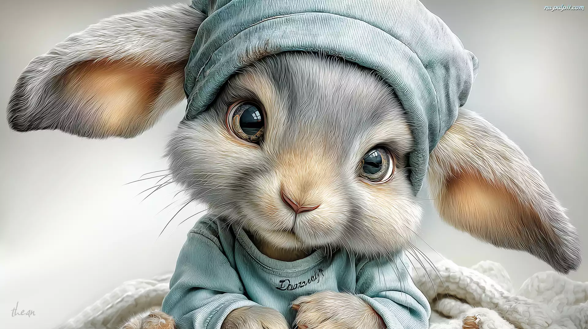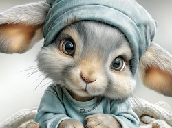 Królik, Ubranko, Czapka, Grafika AI Na Pulpit