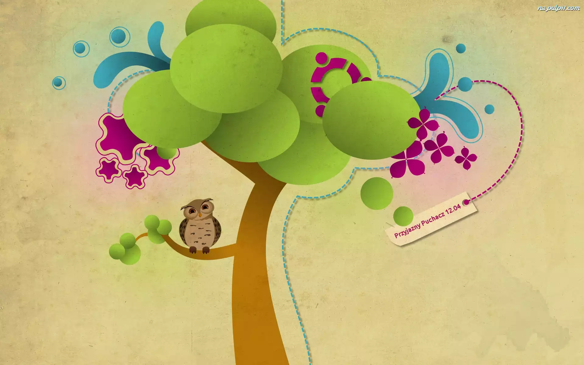 Ubuntu, Drzewo, Sowa, Przyjazny Puchacz