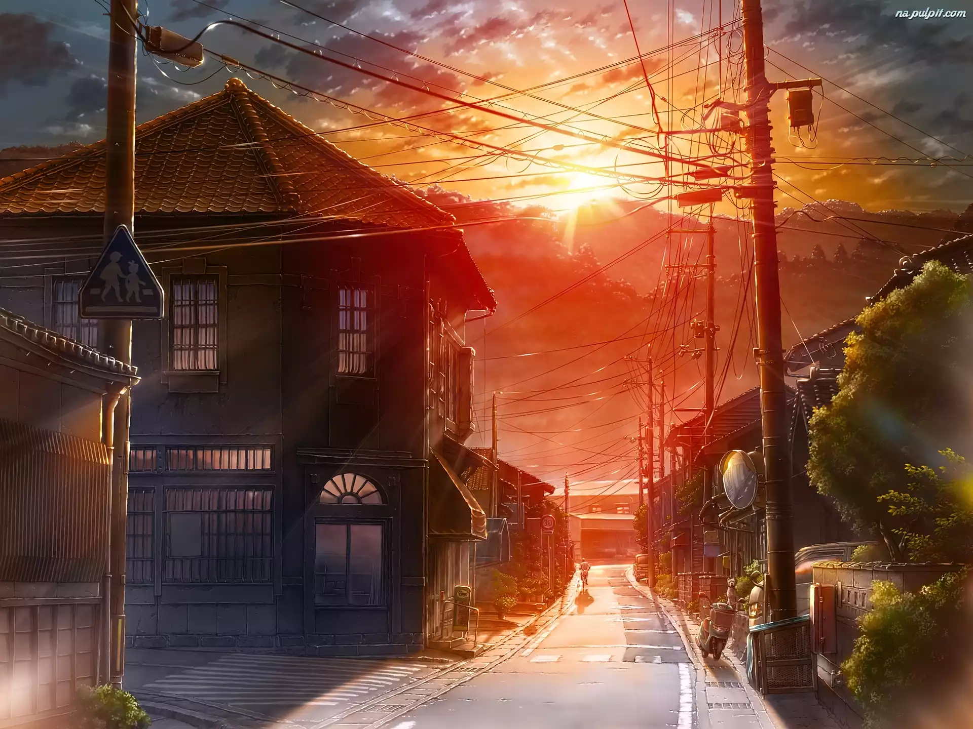 Ulica, Zachód, Manga, Domy, Słońca Na Pulpit