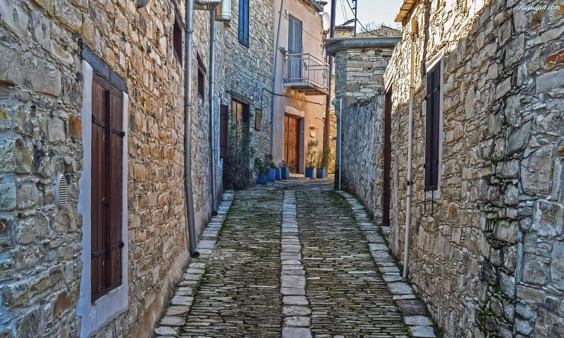 Domy, Brukowana, Dystrykt Larnaka, Cypr, Wioska, Vavla, Ulica Na Pulpit