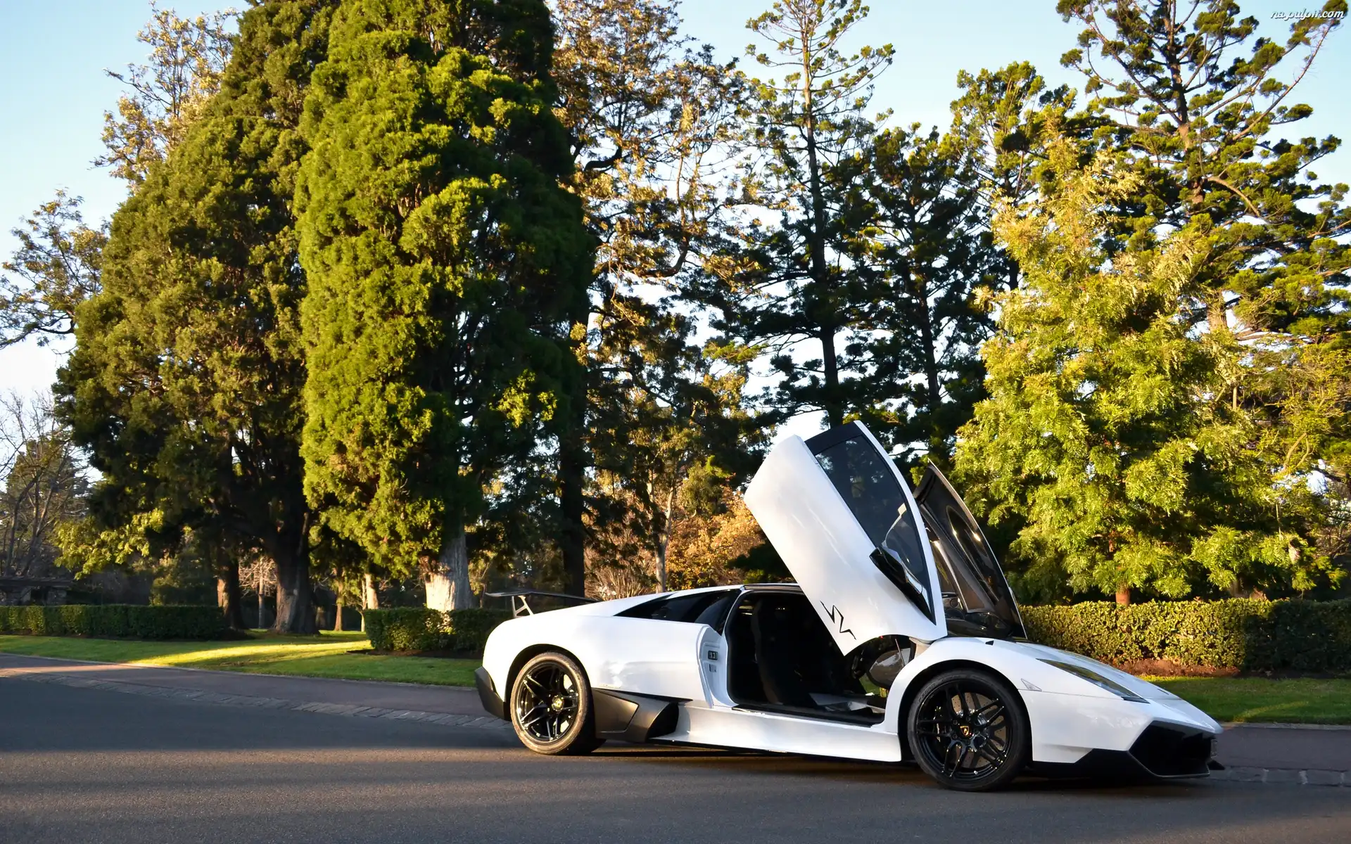 Lamborgini, Ulica, Park, Murcielago, Białe, LP670-4SV Na Pulpit