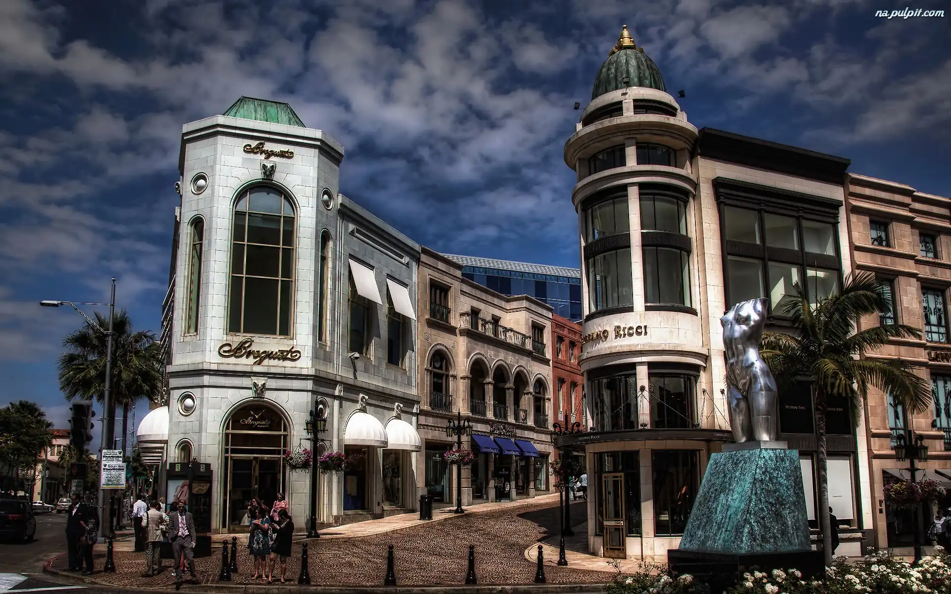 Beverly Hills, Posąg, Zdjęcie miasta, Domy, Los Angeles, Ulica Na Pulpit
