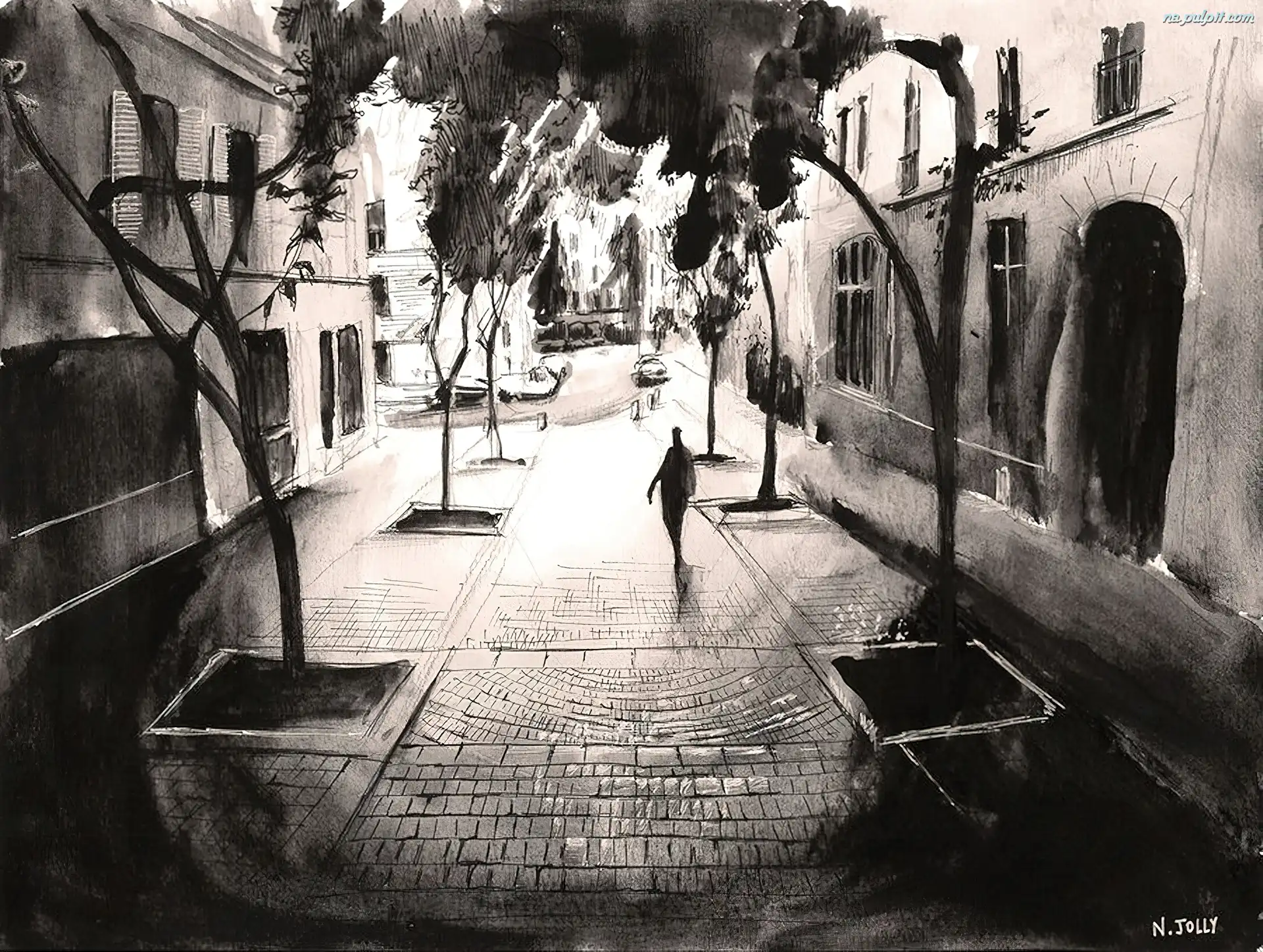 Ulica, Nicolas Jolly, Obrazów, Reprodukcje, Drzewa