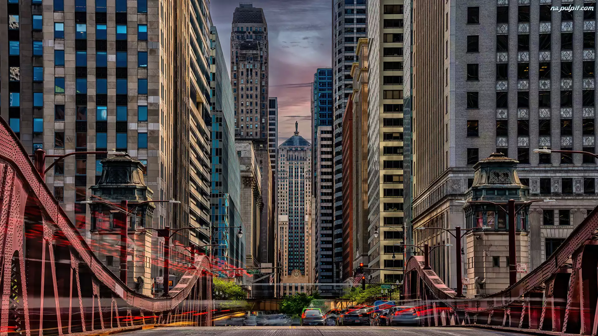 Samochody, Domy, Wieżowce, Stany Zjednoczone, Chicago, Miasto, Ulica Na Pulpit