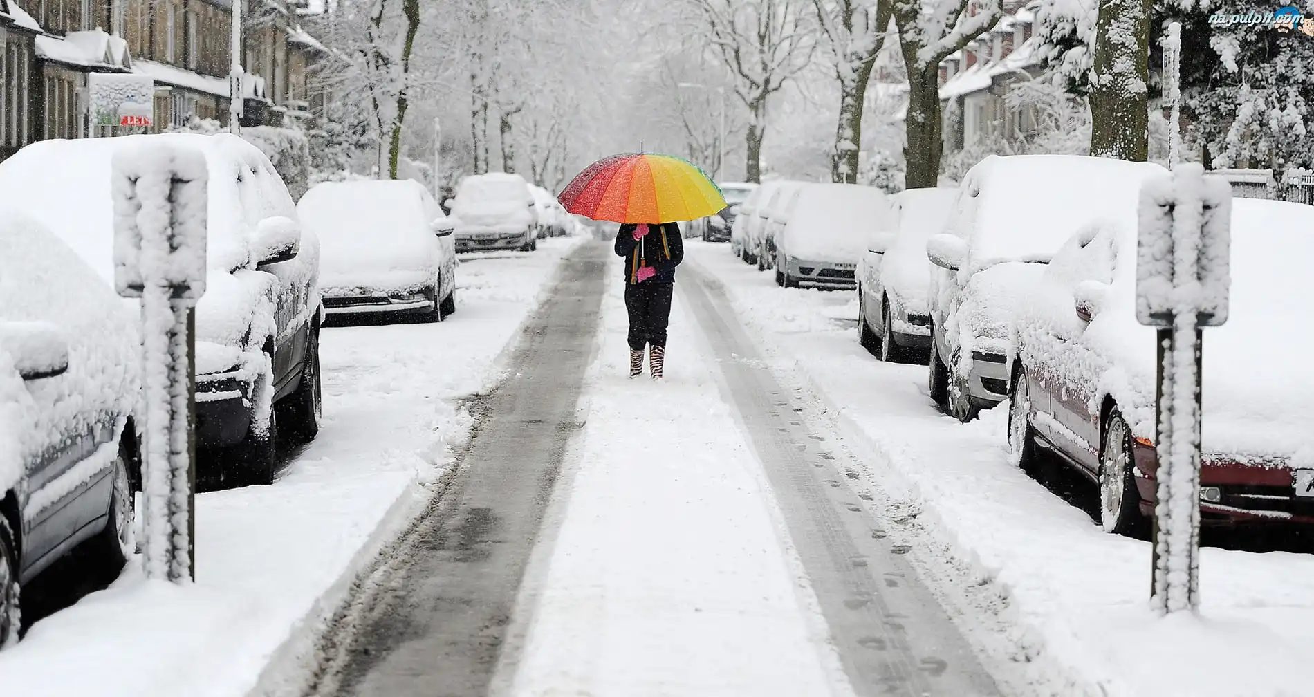 Ulica, Kolorowa, Parasolka, Samochody, Zima, Kobieta Na Pulpit