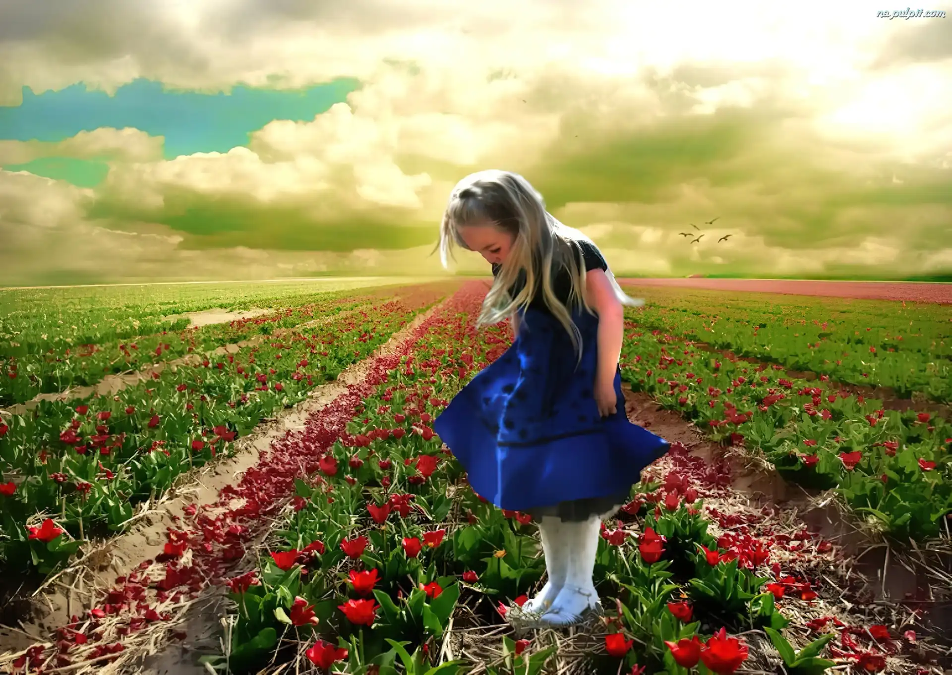 Uprawa, Czerwone, Dziewczynka, Mała, Kwiaty