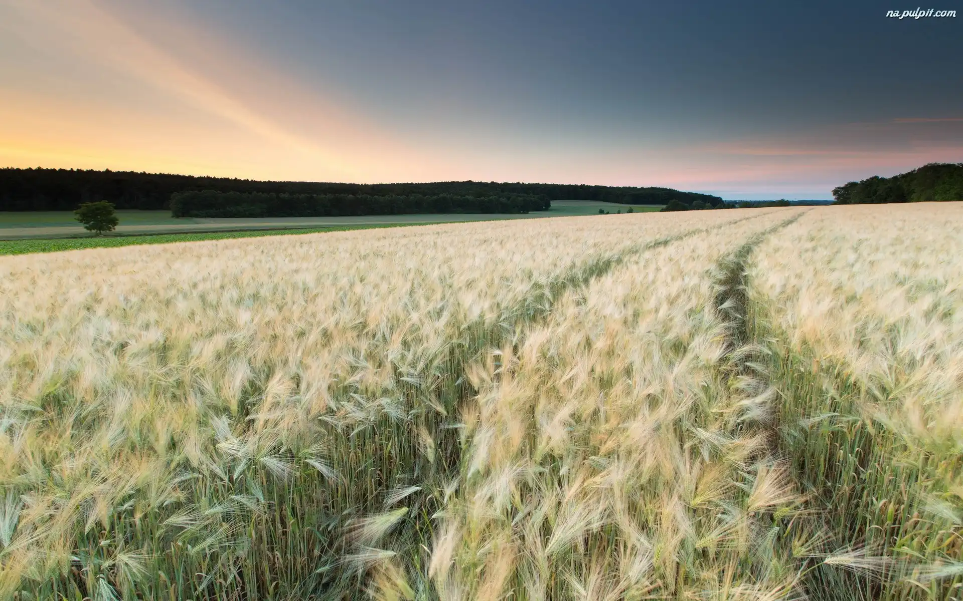 Uprawa, Las, Słońca, Zachód, Zboża Na Pulpit
