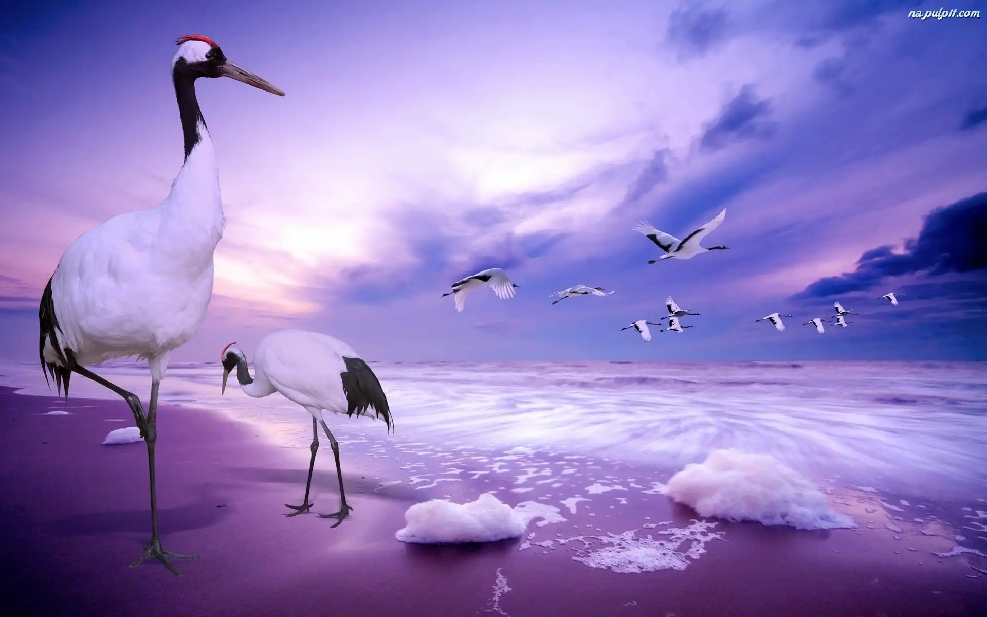 Morze, Żurawie, Plaża Na Pulpit