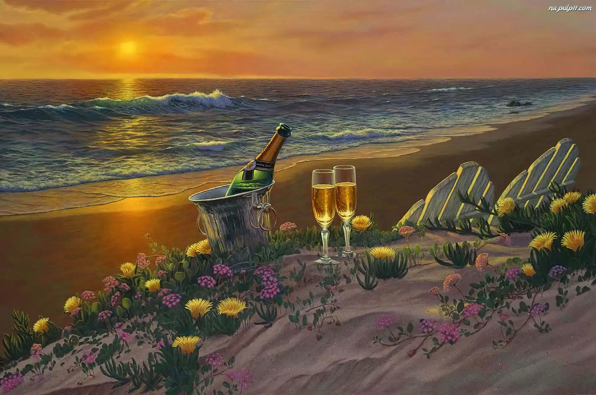 Plaża, Urodzinowy, Szampan Na Pulpit