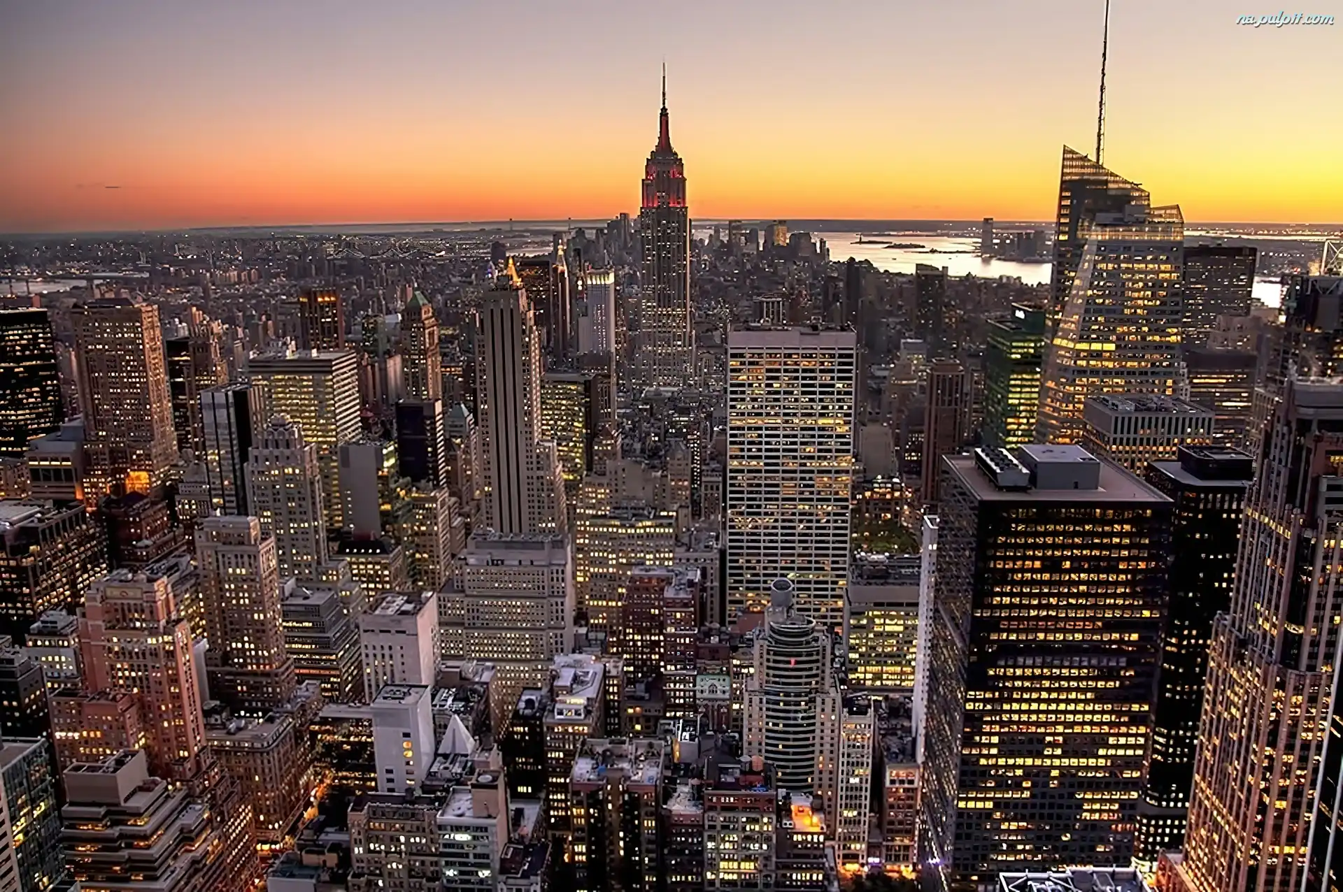 USA, Wieczór, Manhattan, Nowy Jork Na Pulpit
