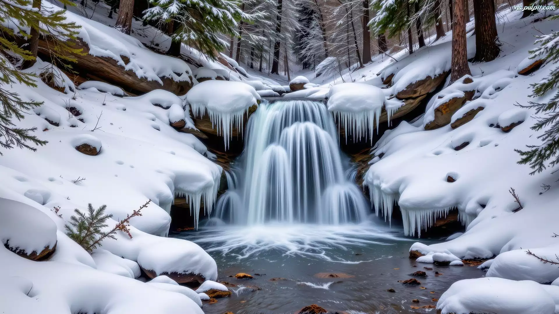ZwisajÄ…ce, Rzeka, Sople, Zima, Åšnieg, Lodu, Las, Uskok Na Pulpit