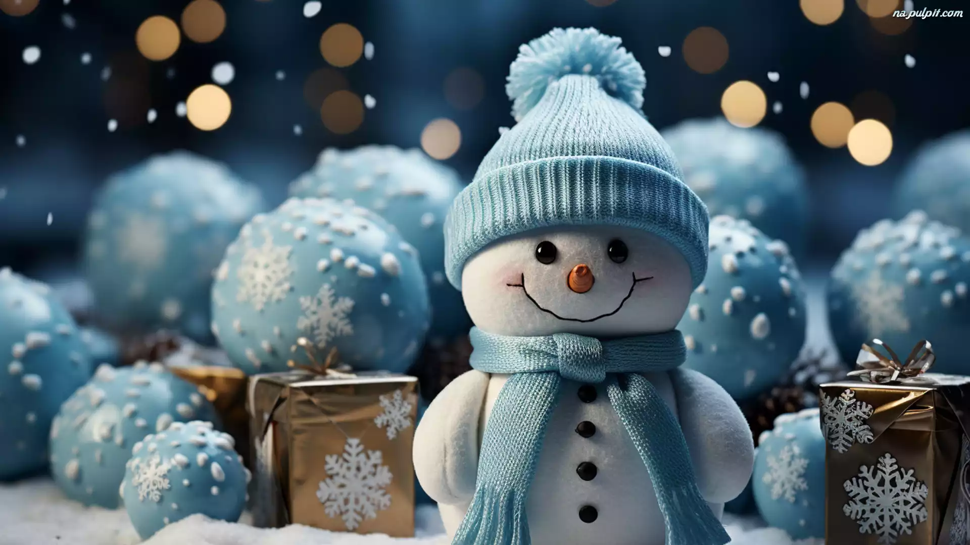 Prezenty, Szalik, Bombki, Bałwan, Grafika, Śnieg, Czapka, Uśmiech Na Pulpit