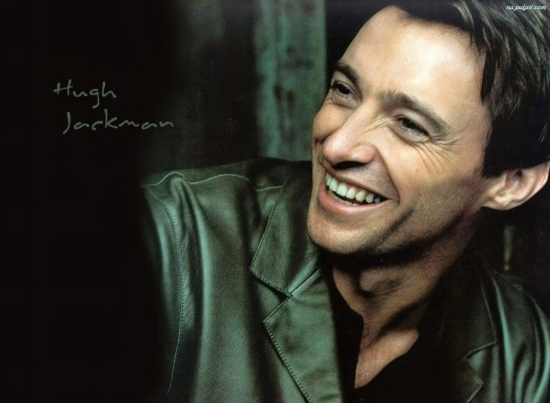 uśmiech, Hugh Jackman, ciemne włosy Na Pulpit