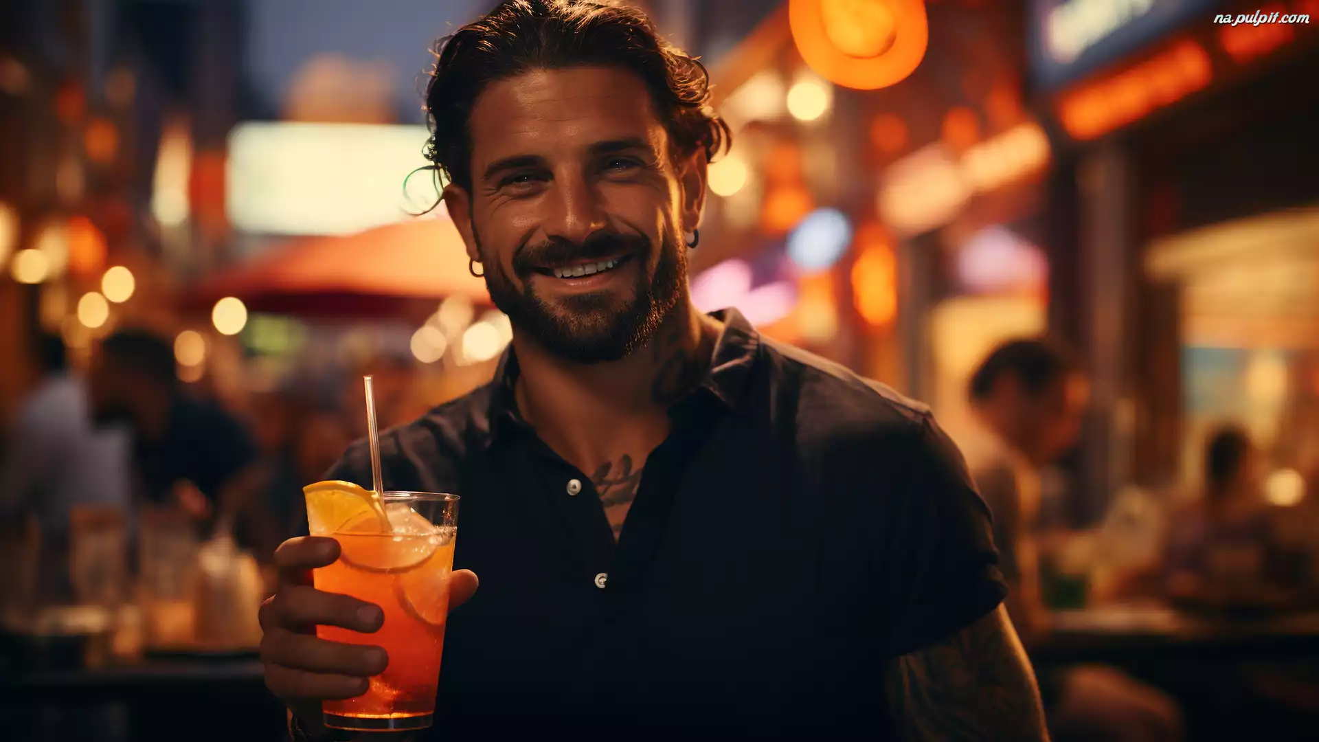 Uśmiech, Mężczyzna, Drink Na Pulpit