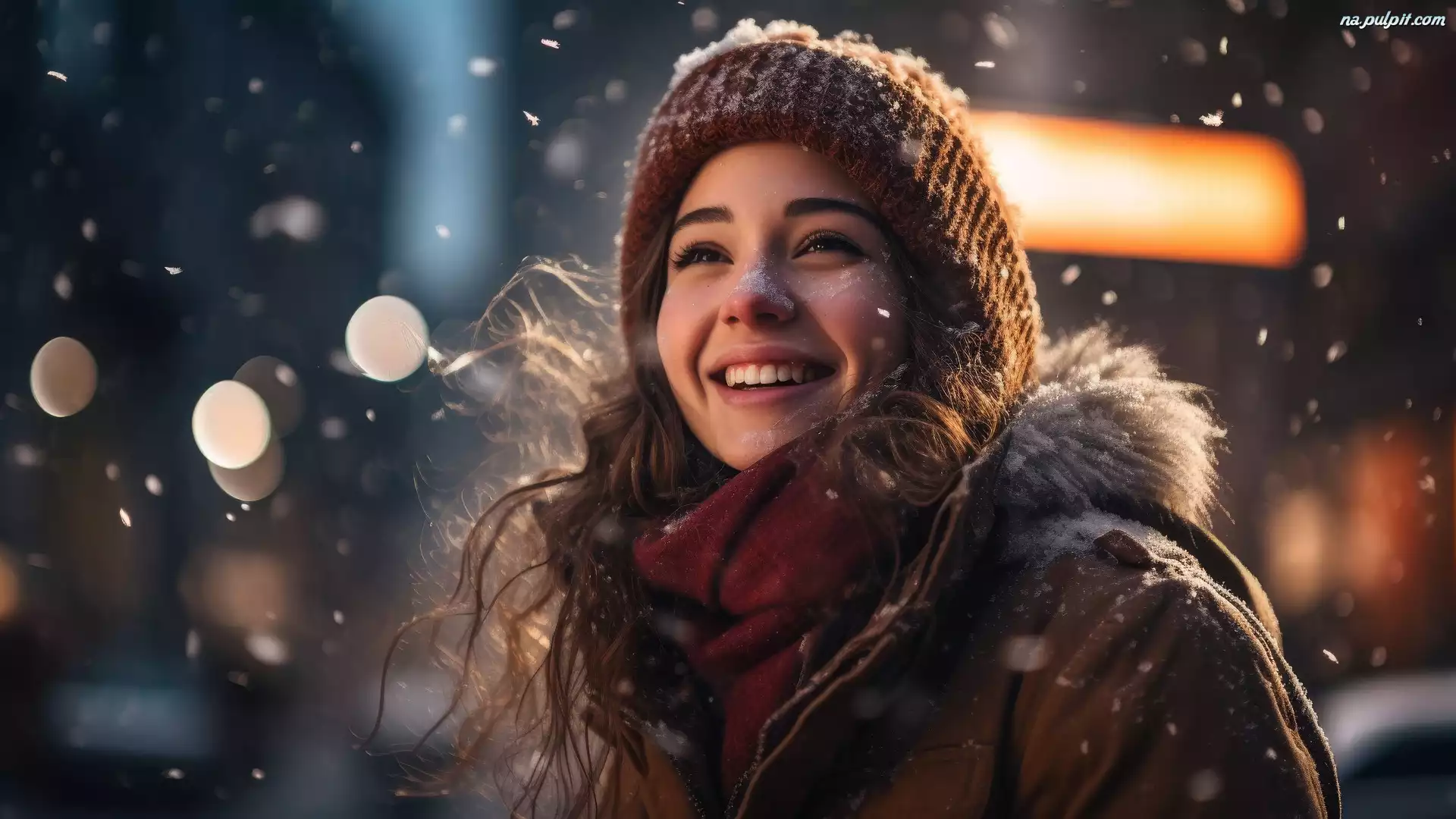 Czapka, Włosy, Kurtka, Dziewczyna, Śnieg, Szal, Długie, Uśmiech Na Pulpit