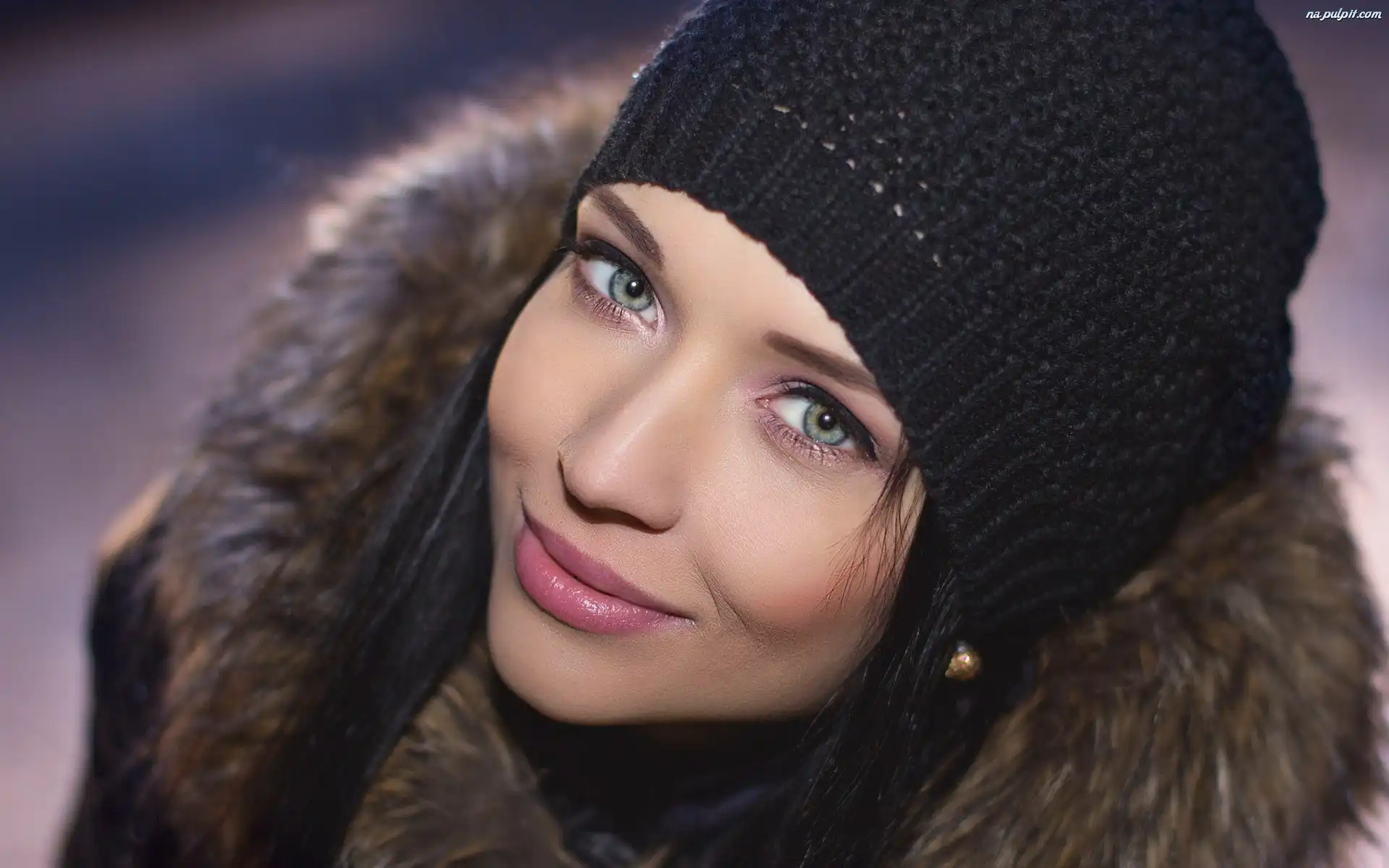 Okrycie, Uśmiech, Zimowe, Makijaż, Delikatny, Dziewczyna, Czapka
