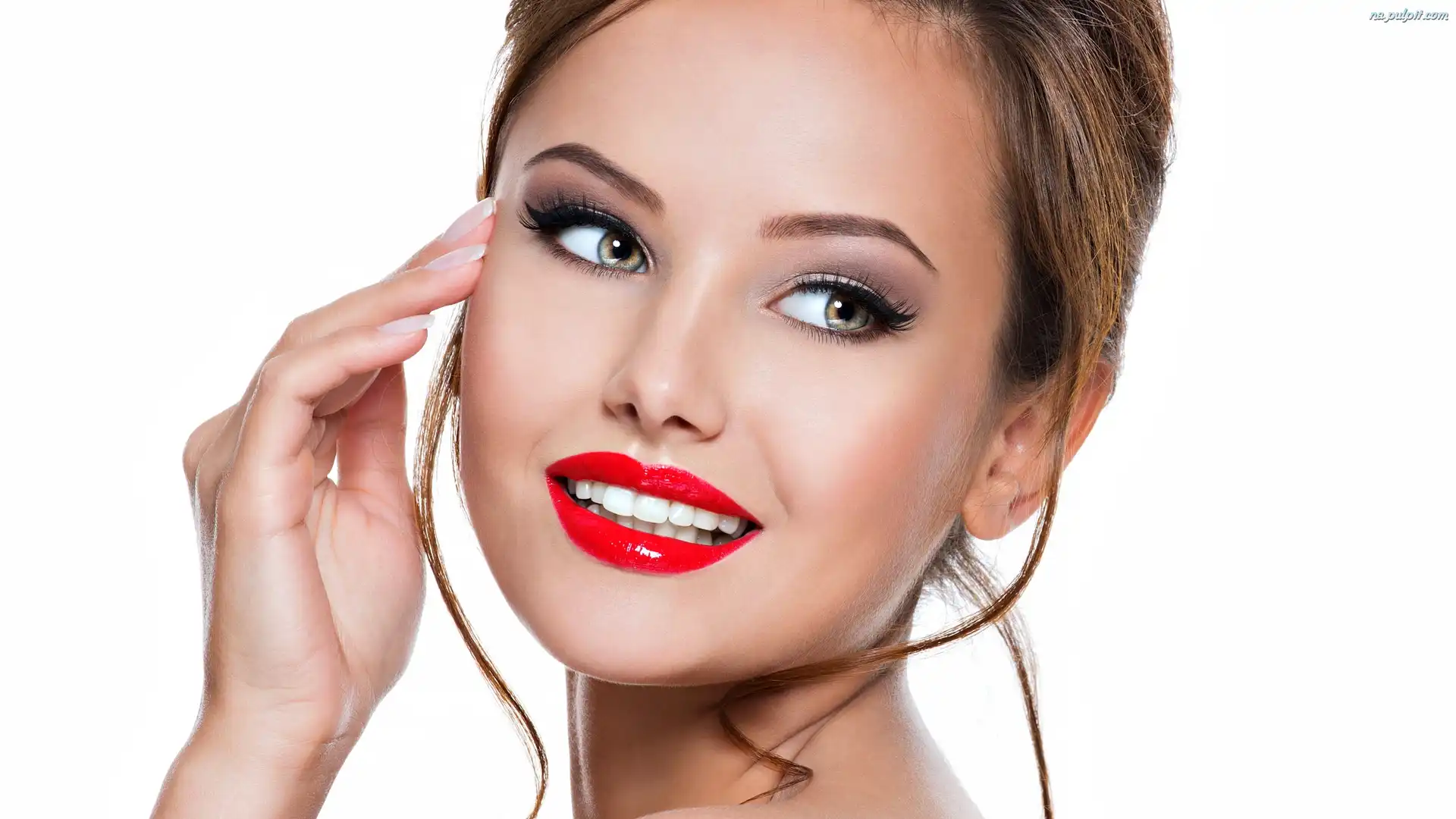Tło, Uśmiech, Białe, Upięte, Makijaż, Kobieta, Włosy Na Pulpit