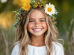 Wianek, Uśmiechnięta, Dziewczynka, Kwiaty, Blondynka