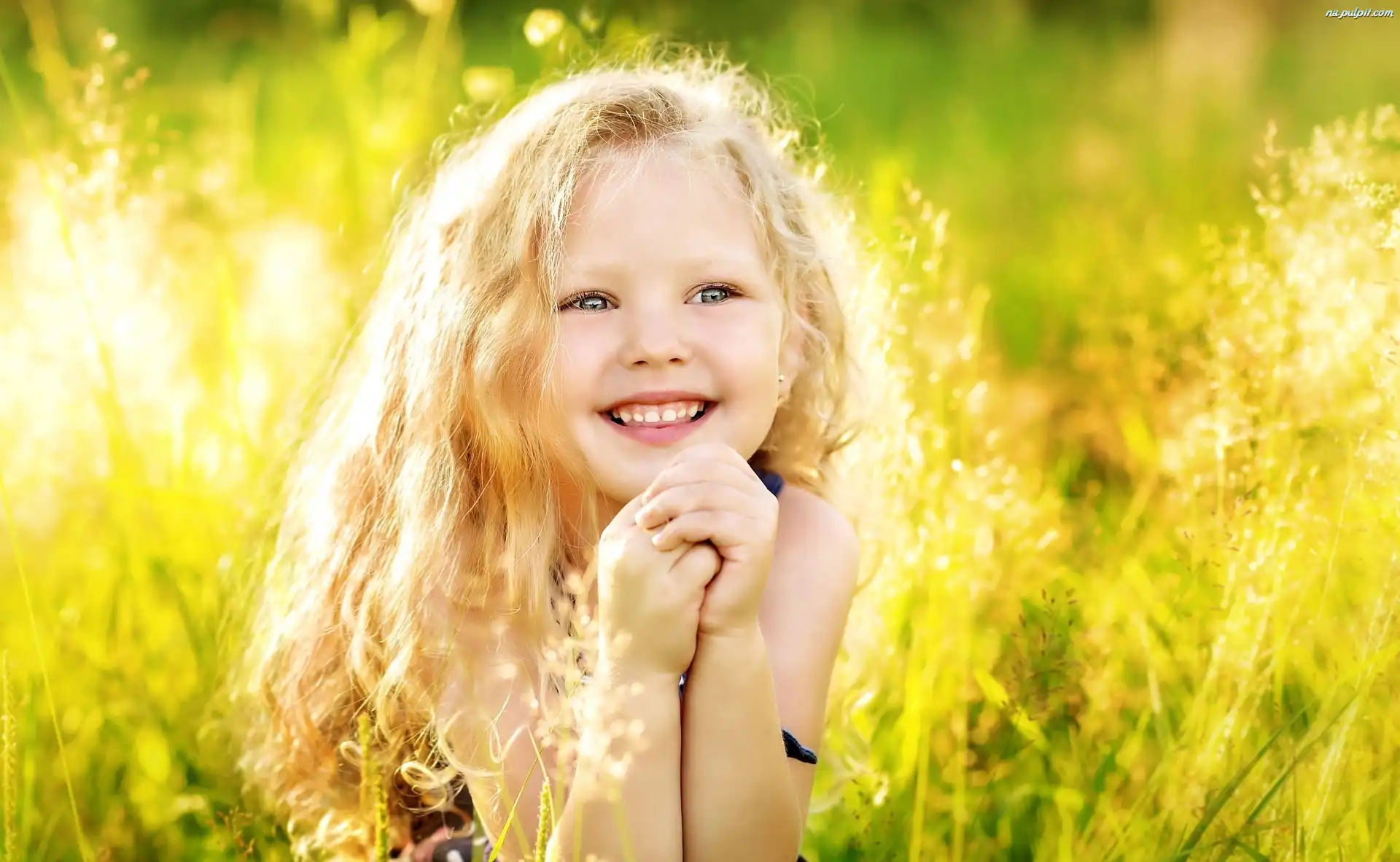 Trawa, Uśmiechnięta, Dziewczynka