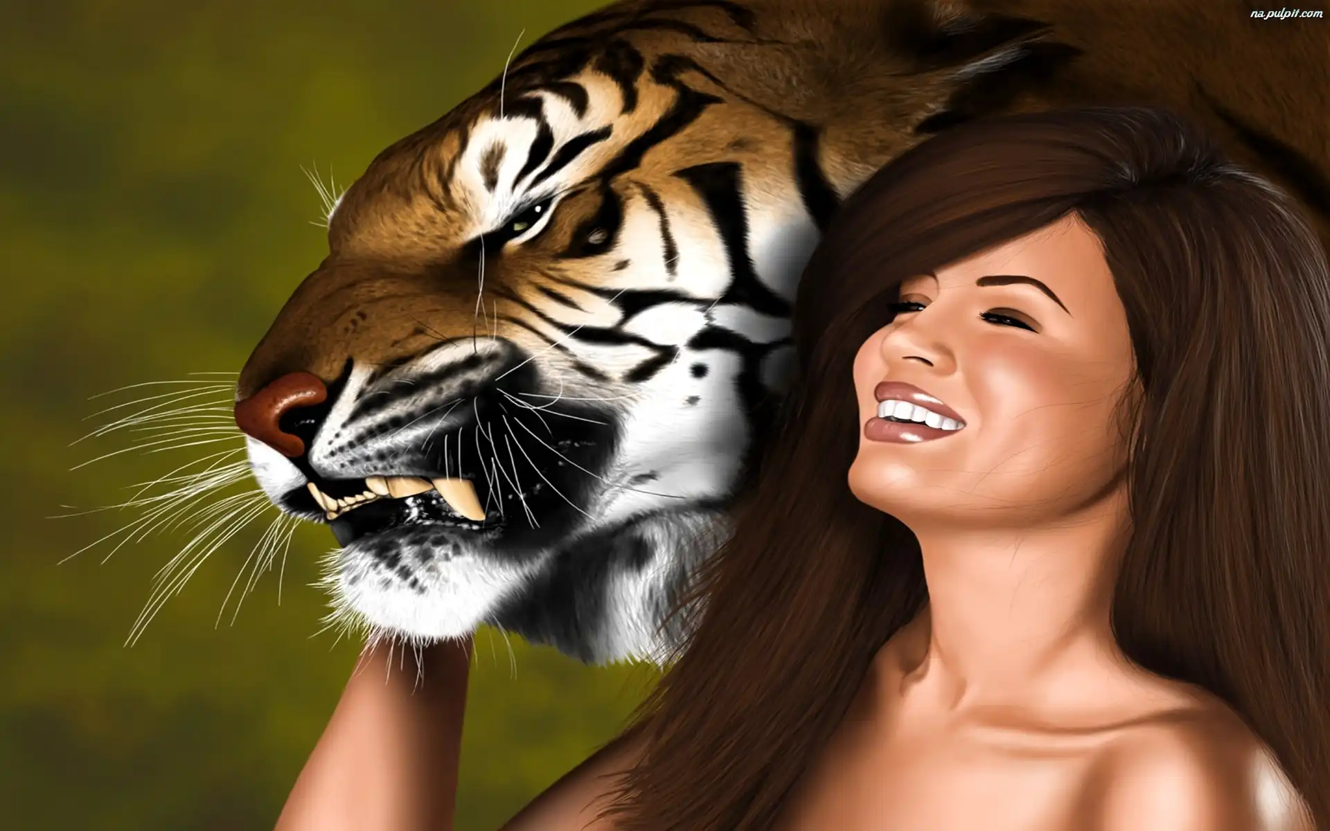 Tygrys, Uśmiechnięta, Kobieta