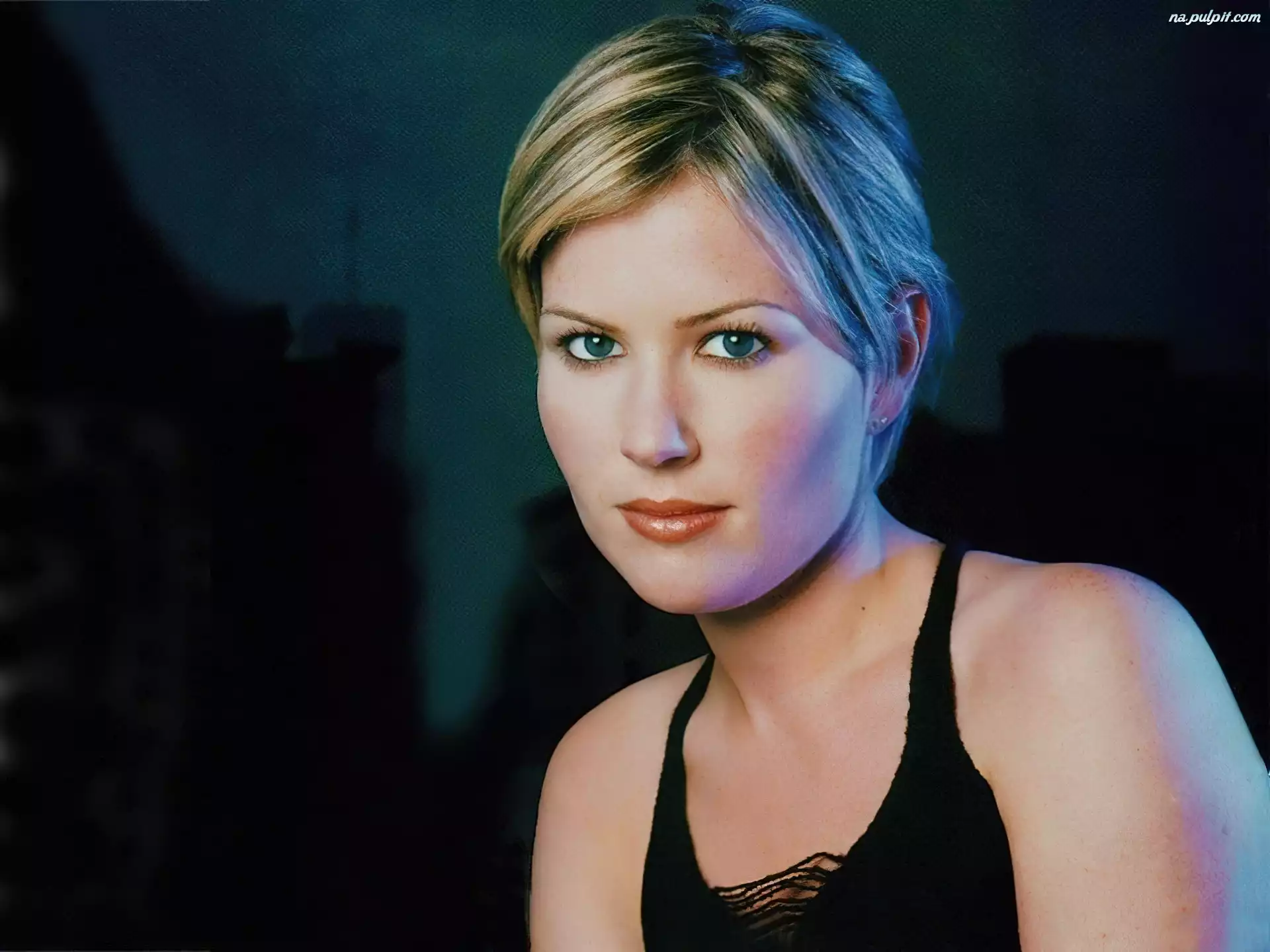 usta, Dido Dido, niebieskie, oczy spodnie, Dido, czarne Dido Dido, blond, krótkie, włosy uśmiech, Dido Dido kurteczka, jeans, Dido, zamsz cienie, Dido, zielone Dido oczy, Dido Dido, frędzle buzia, Dido włosy, Dido