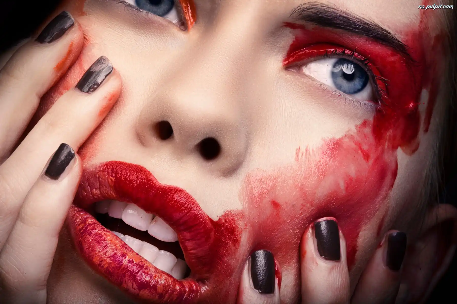 Usta, Czerwone, Kobieta, Rozmazane Na Pulpit
