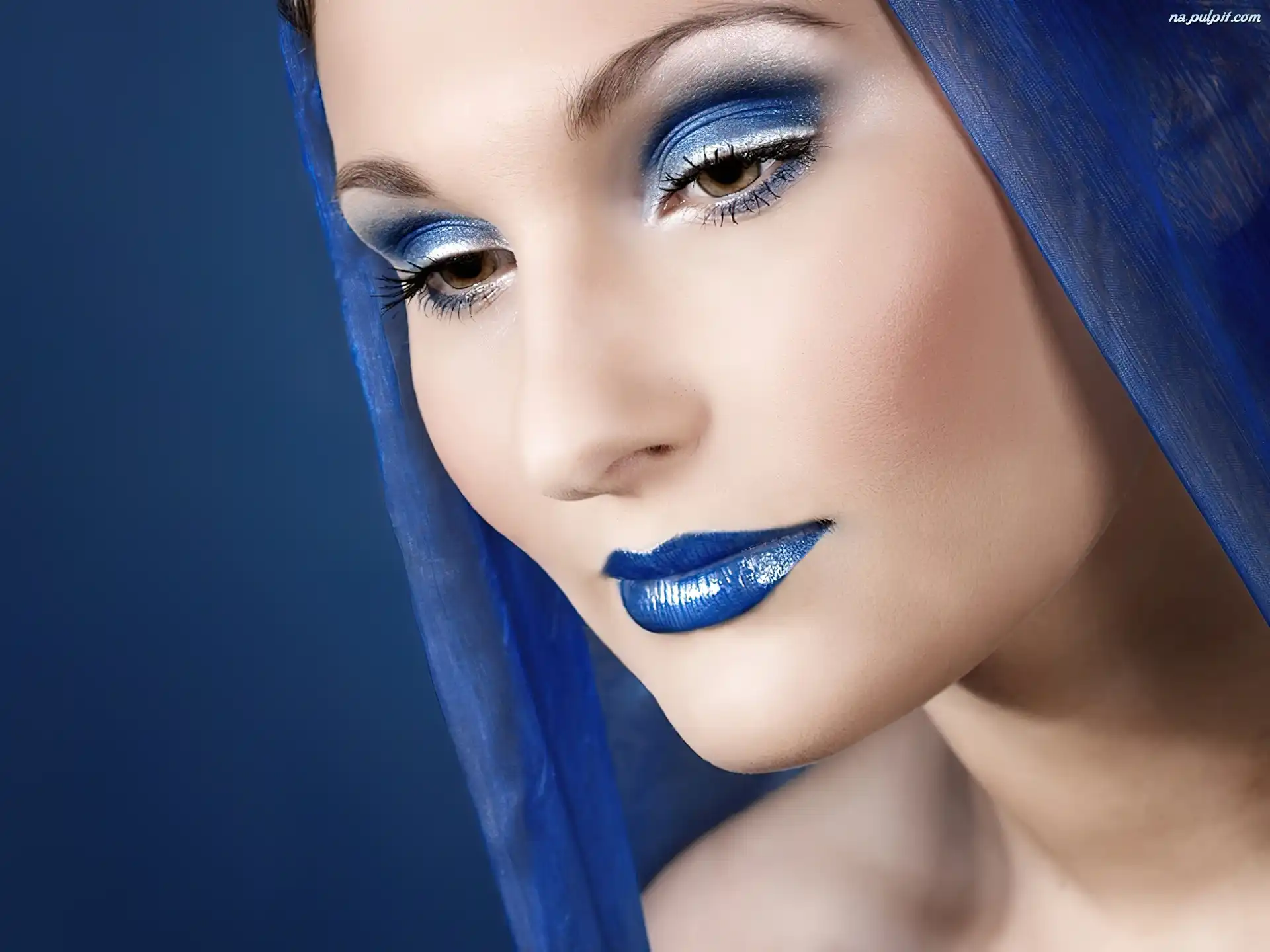 Usta, Makijaż, Kobieta, Niebieskie Na Pulpit