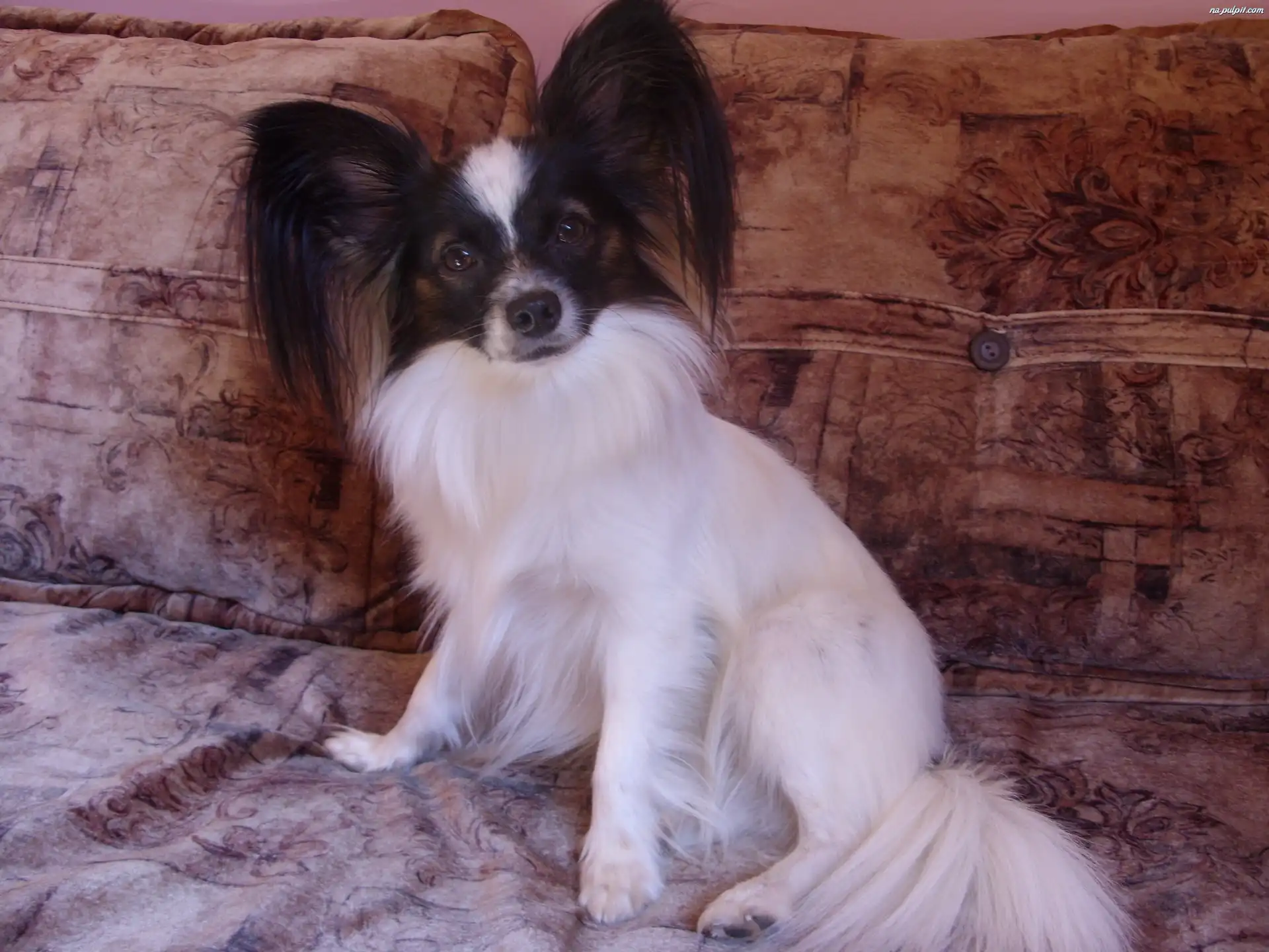 łóżko, uszy, stojące, Spaniel kontynentalny miniaturowy Papillon Na Pulpit