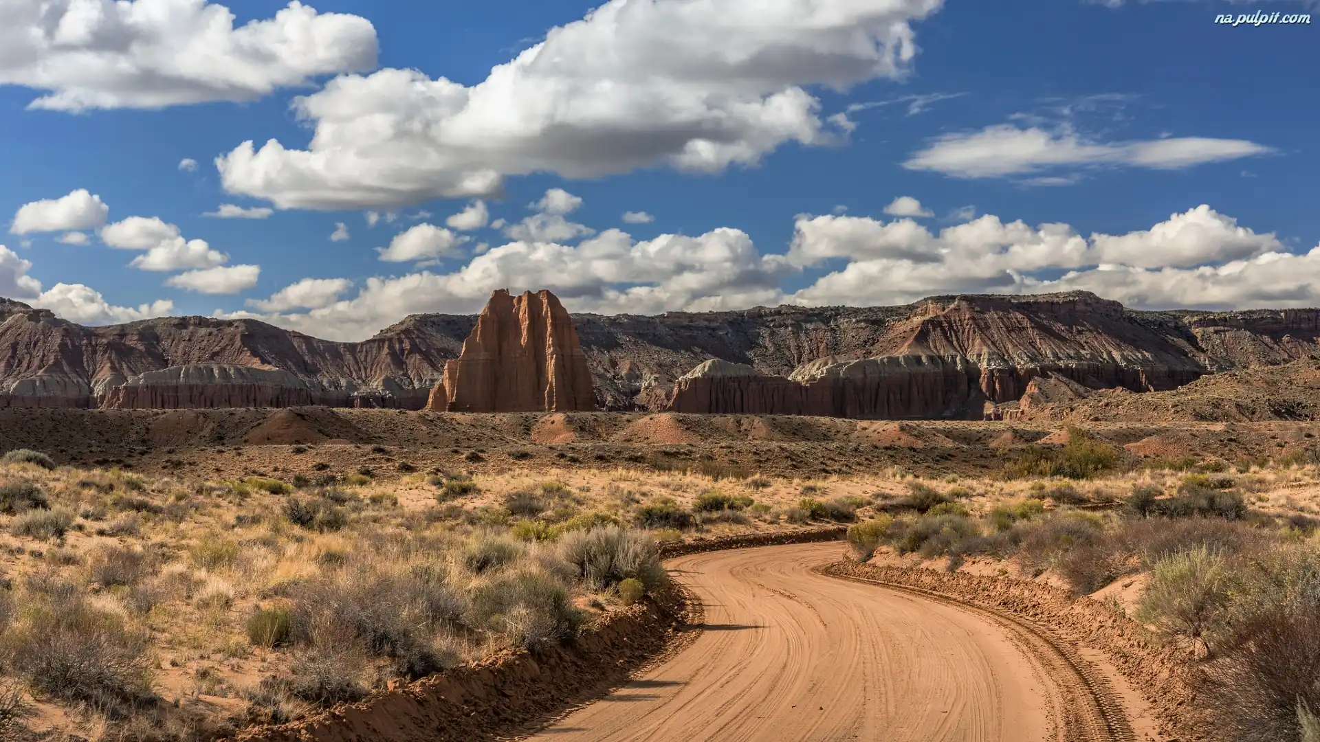 Stany Zjednoczone, Droga, Skały, Park Narodowy Capitol Reef, Stan Utah Na Pulpit