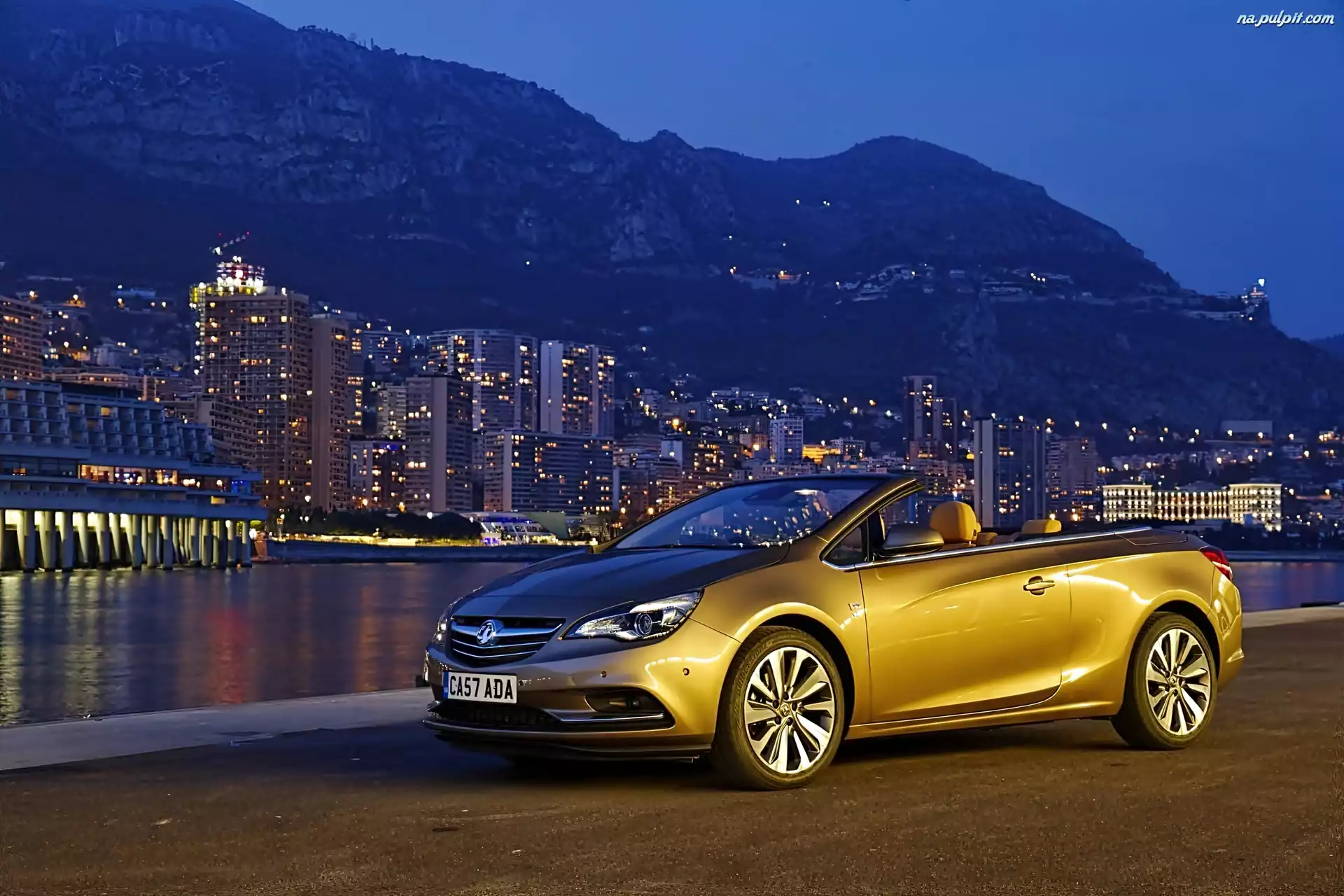 Panorama, Żółty, Nocą, Miasta, Cascada, 2013, Kabriolet, Droga, Rzeka, Vauvxhall Na Pulpit
