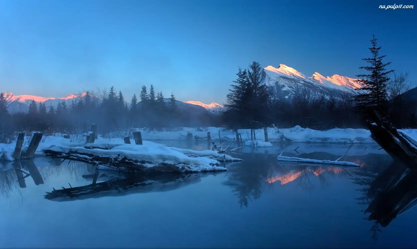 Zima, Park Narodowy Banff, Jezioro Vermilion Lakes, Kanada, Góry Na Pulpit