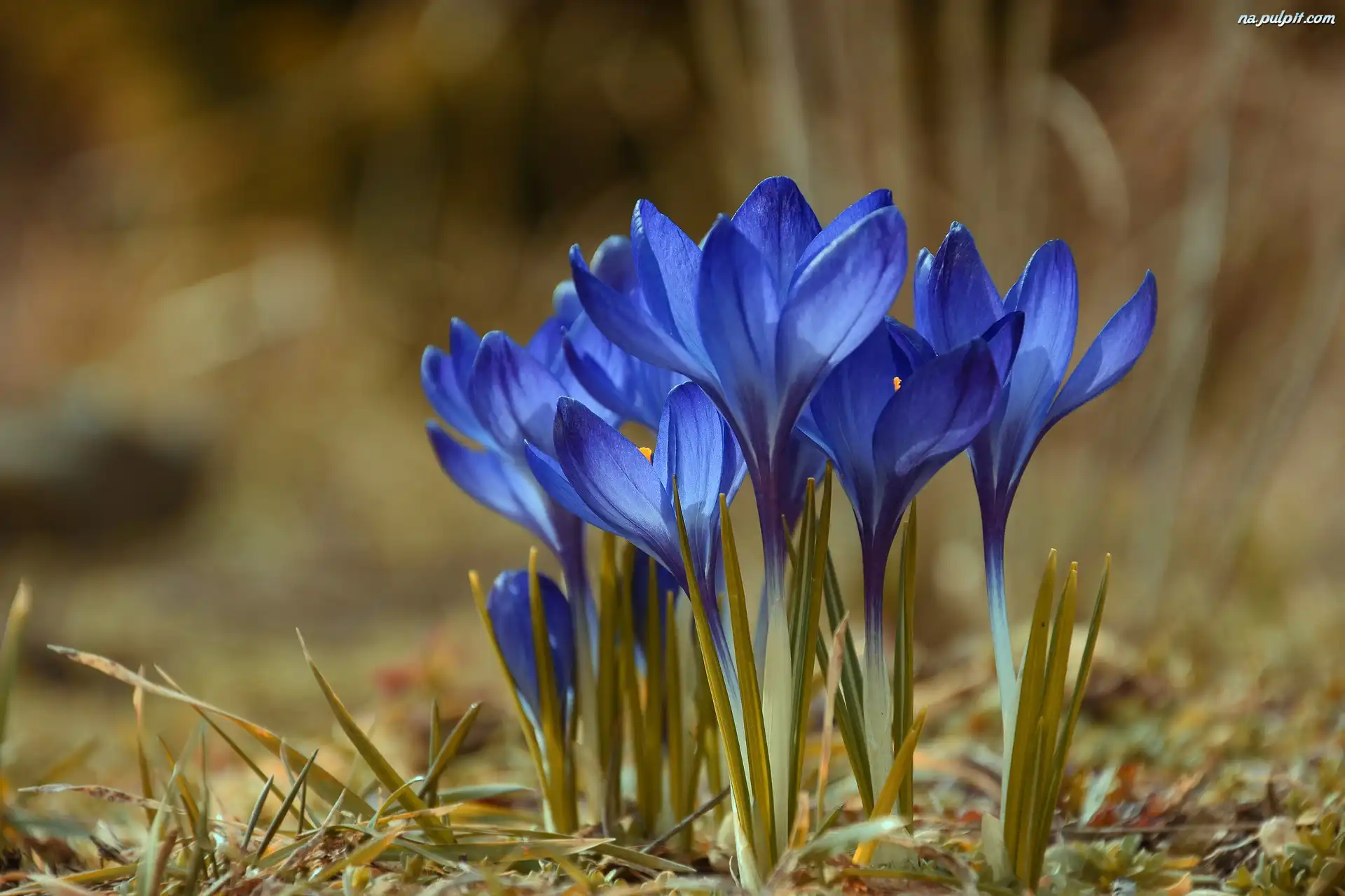 Tło w rozmyciu, Krokusy niebieskie, Kwiaty, Kępka Na Pulpit