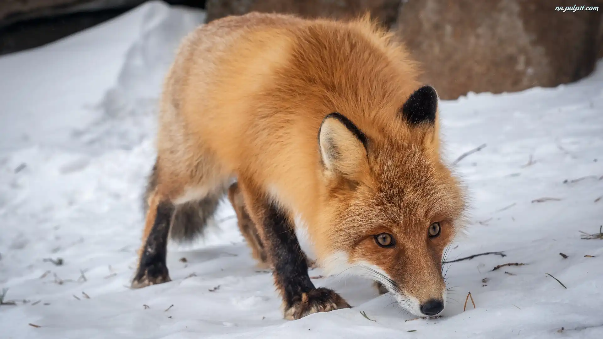 Śnieg, Rudy, Wąchający, Lis Na Pulpit