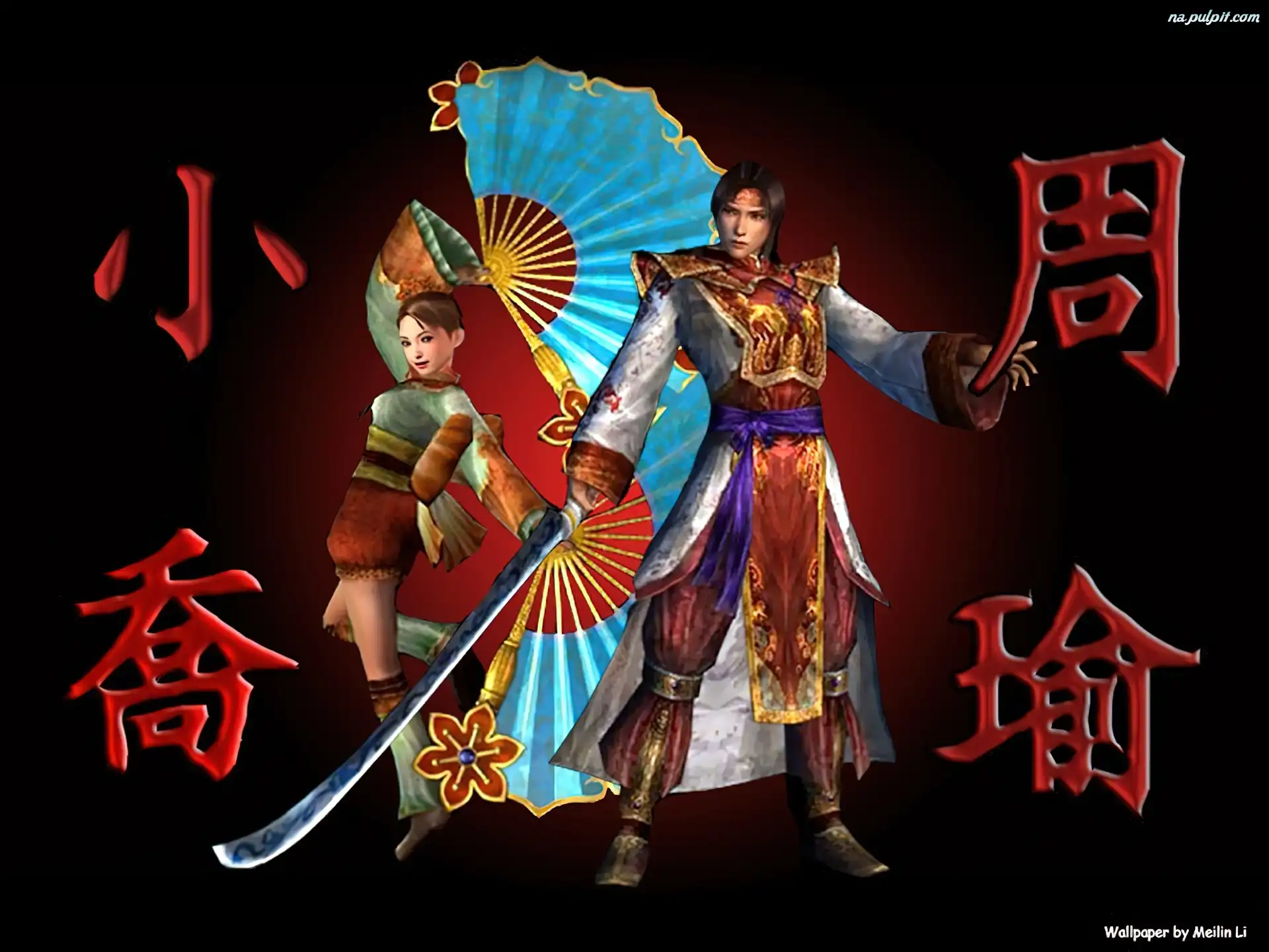 postać, wachlarz, katana, kobieta, Dynasty Warriors 4, mężczyzna Na Pulpit