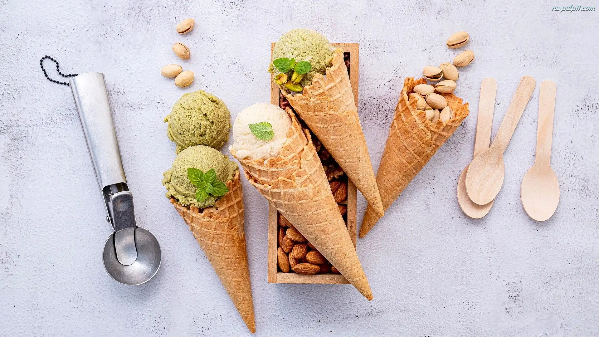 Wafelki, Migdały, Łyżeczki, Rożki, Lody, Pistacje Na Pulpit