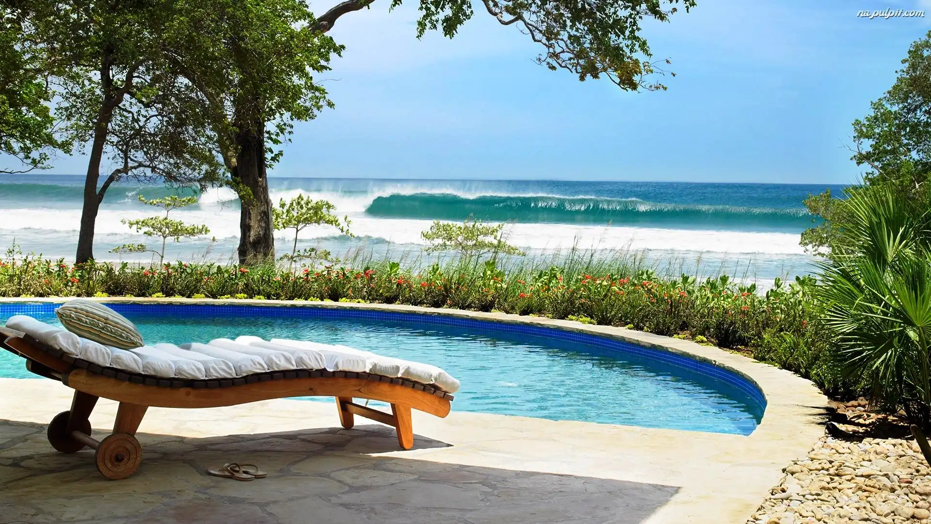 Wakacje, Morze, Leżak, Basen, Roślinność Na Pulpit